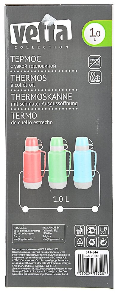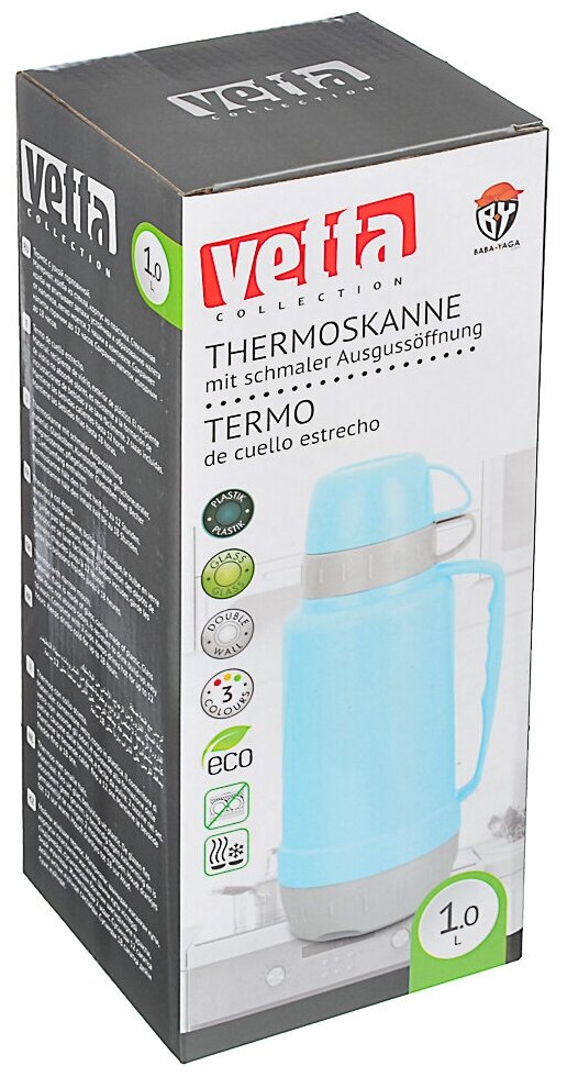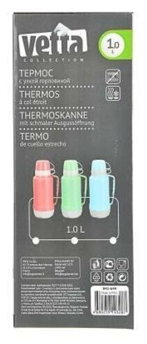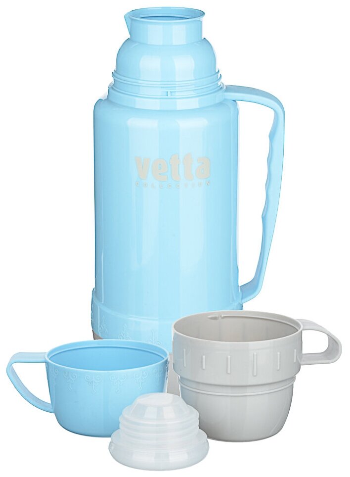 Купить Термос Vetta Tourist, стеклянная колба, 1 л, пластик, две кружки, цвет в ассортименте