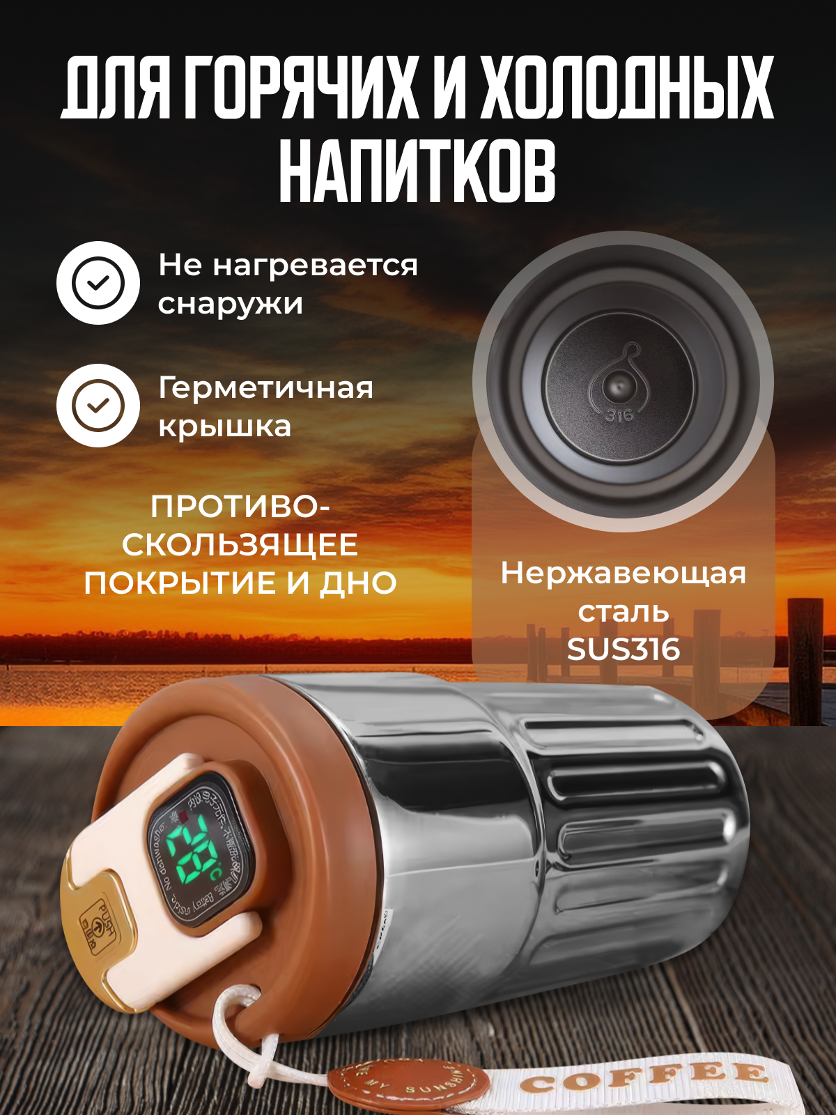 Термокружка термометром Coffee 500 мл термостакан