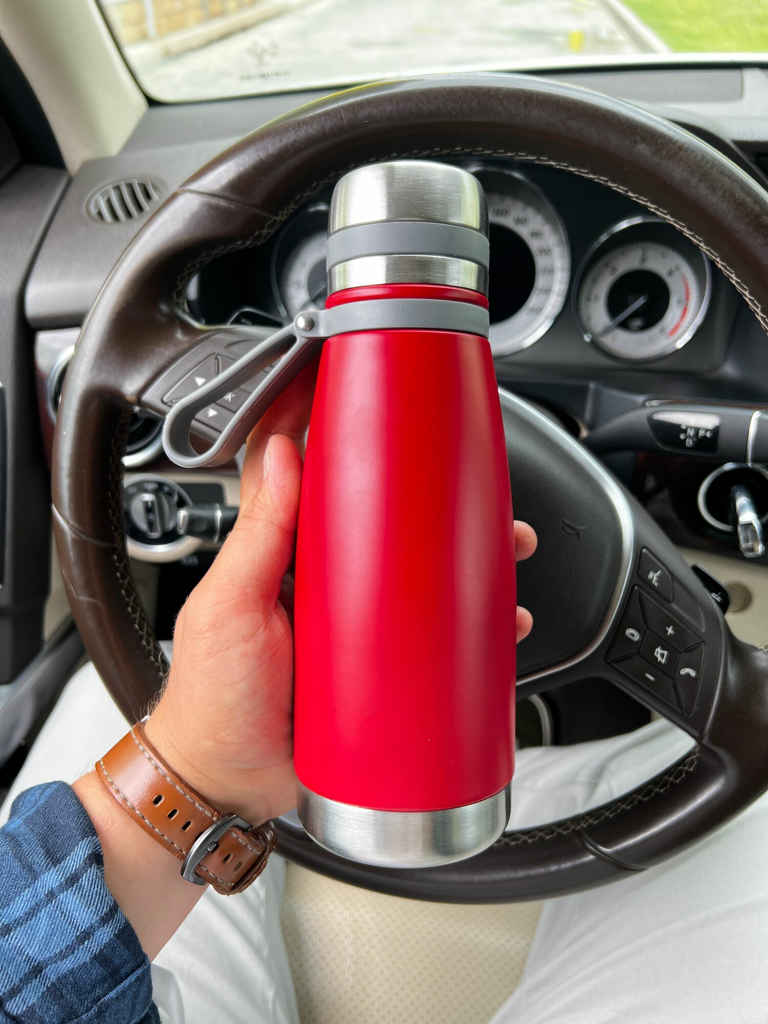 Термос - бутылка вакуумный 1100 миллилитров красный для повседневного пользования