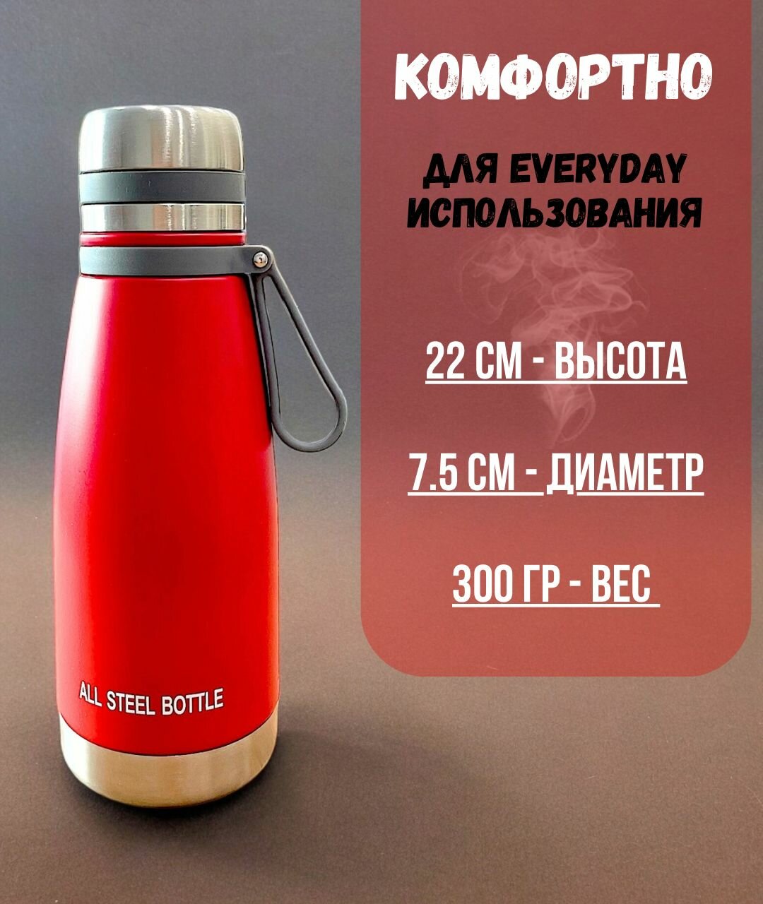 Термос - бутылка вакуумный 650 мл красный для повседневного пользования