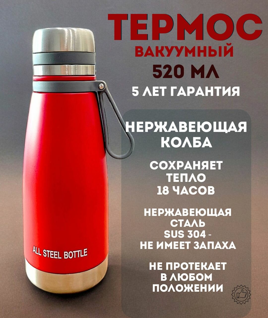 СохранитьТермос - бутылка вакуумный 520 мл красный для повседневного пользования интересное:
