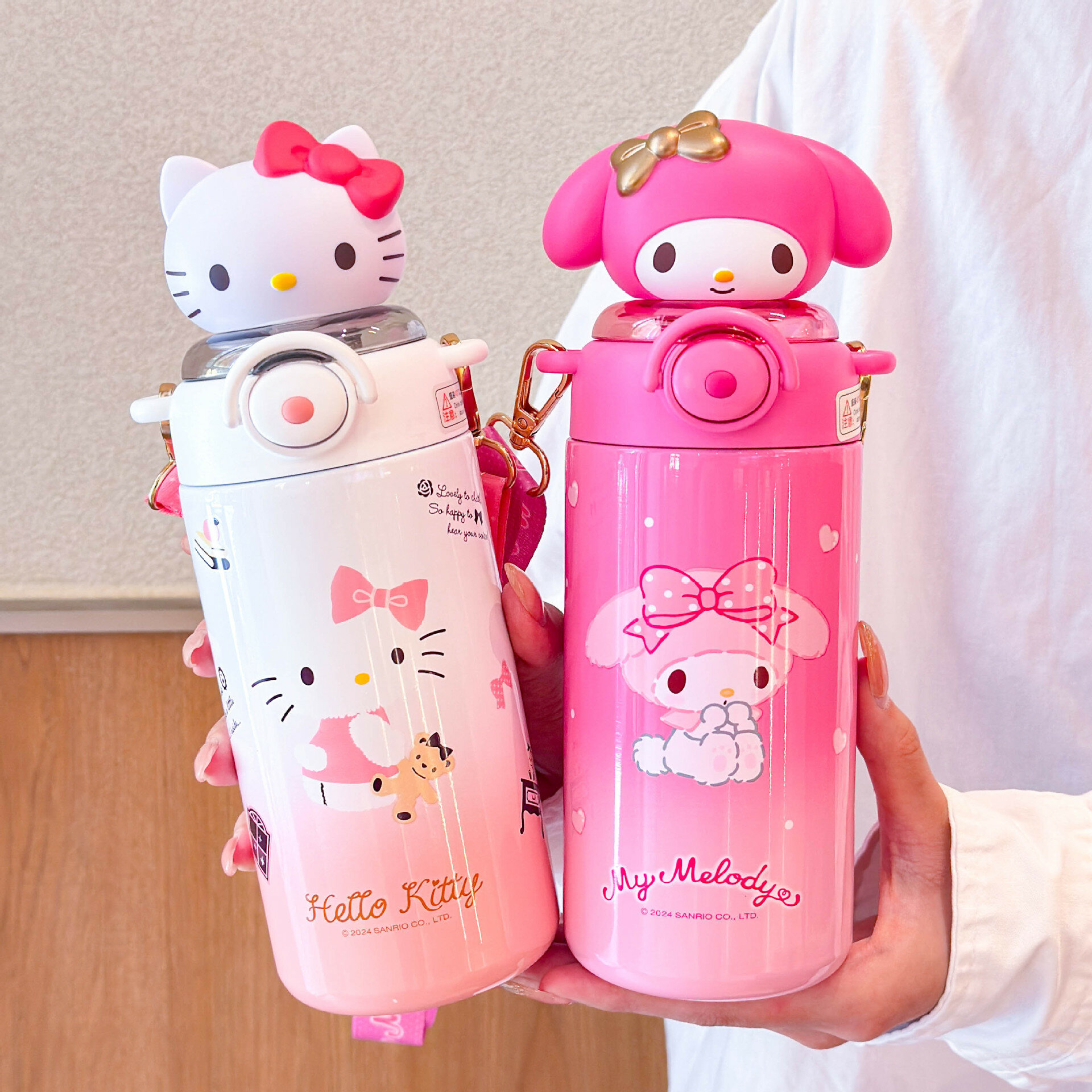 Купить Термокружка Miniso My Melody Pink Lady, для детей, с ремешком и трубочкой, сохраняет тепло до 8 часов