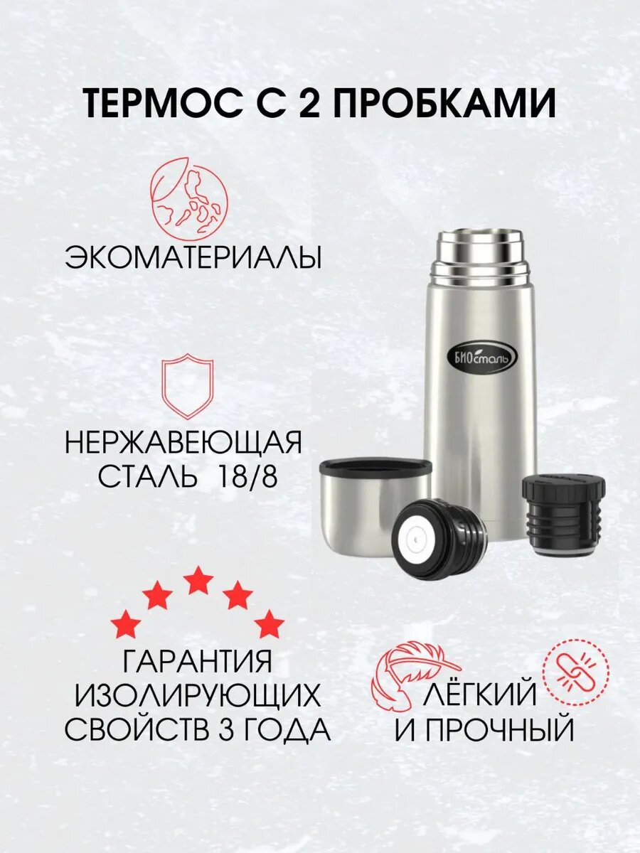 Термос Биосталь, для чая/кофе, 0,75 л, нержавеющая сталь, ударопрочный, с крышкой-чашкой