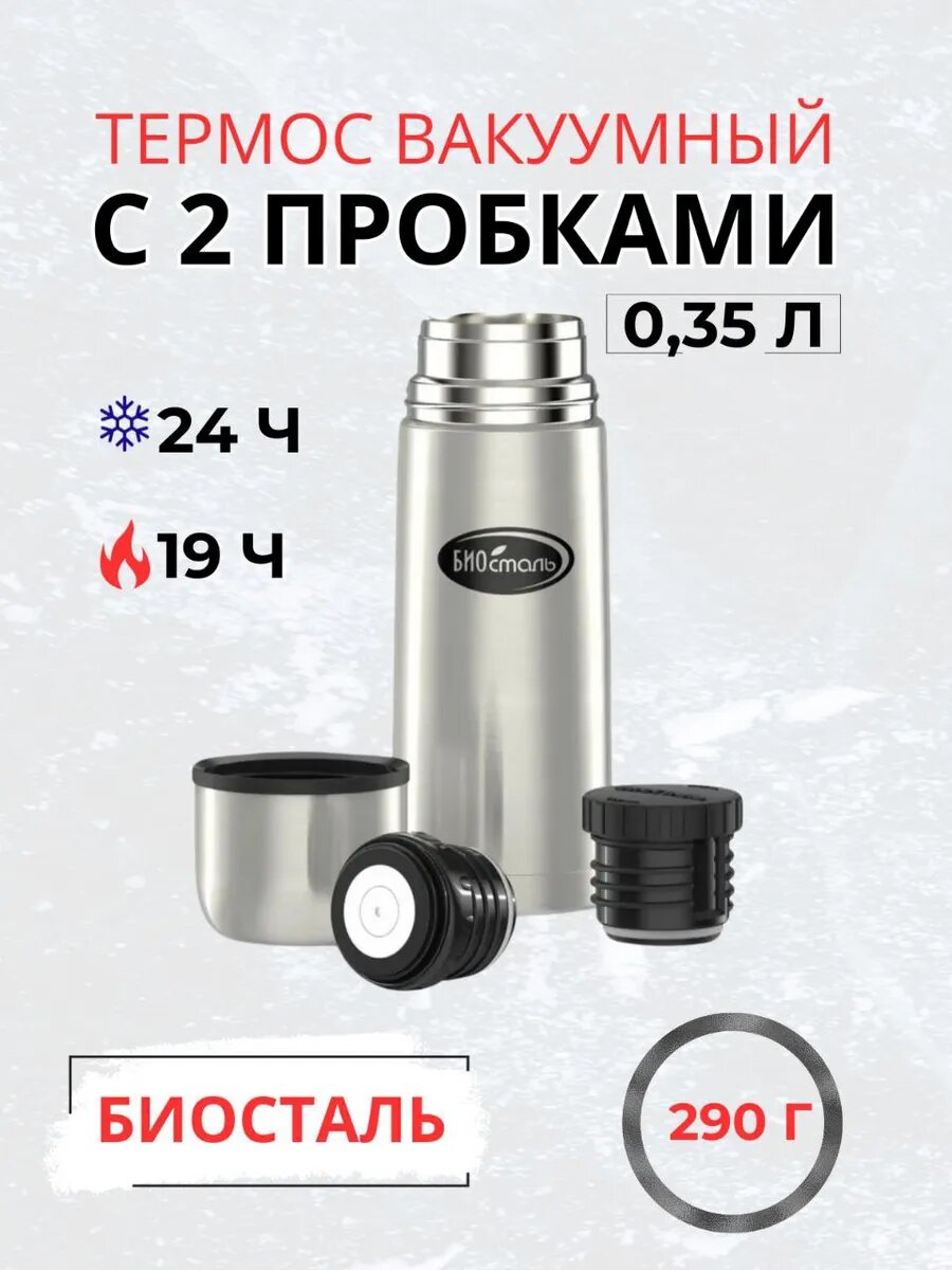 Термос для чая 350 мл детский в школу Биосталь с дополнительной пробкой интересное: