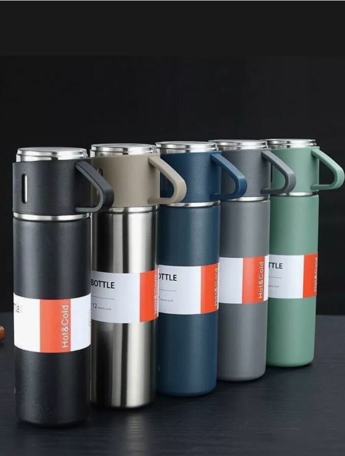 Термос подарочный "Вакуумный Термос с Кружками", 500мл, черный интересное: