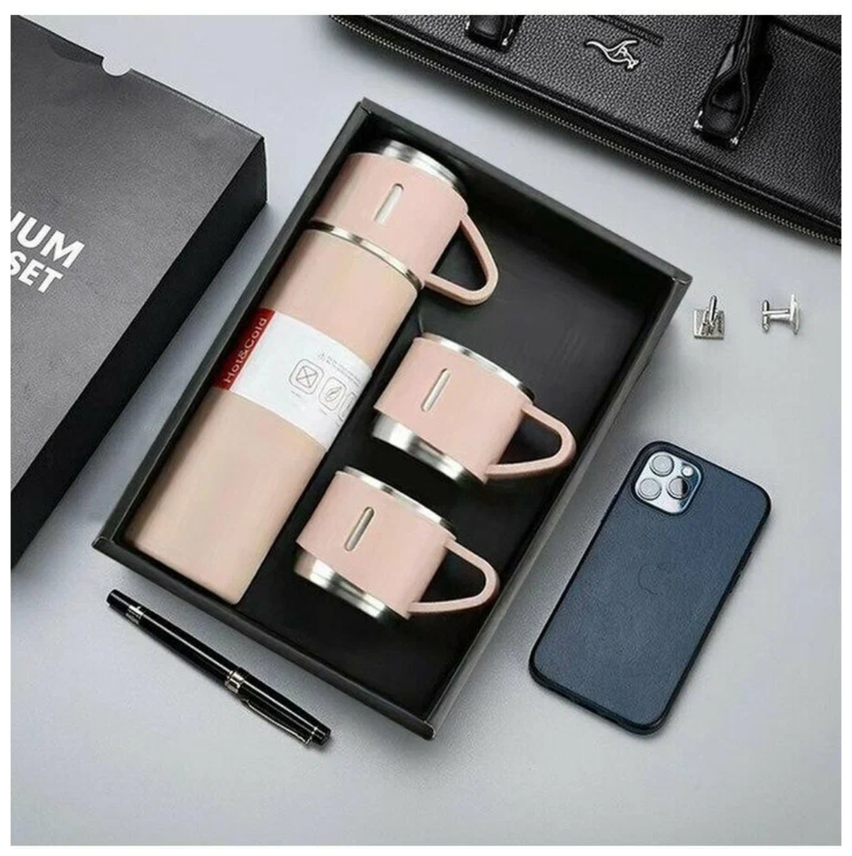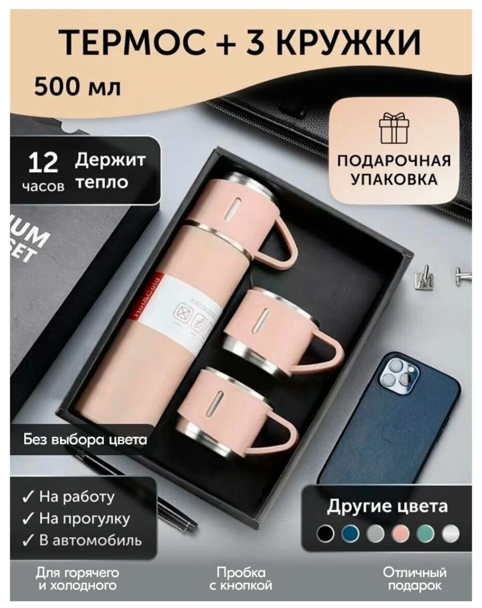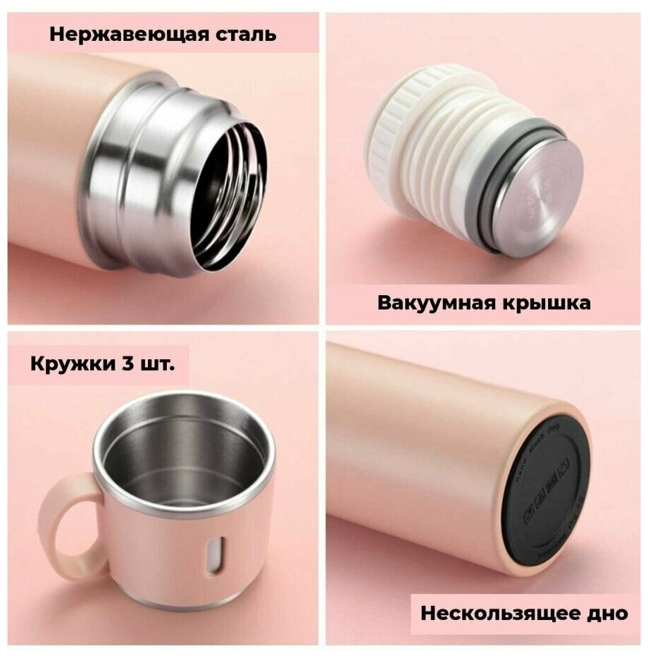 Вакуумный термос с кружками 0,5, литров с тремя кружками/Подарочный набор интересное: