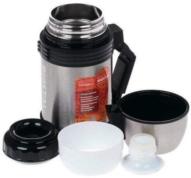 Термос биосталь - спорт 2 литра универсальный, для еды и напитков, две чашки, ручка для переноски, (2000 мл) Biostal интересное: