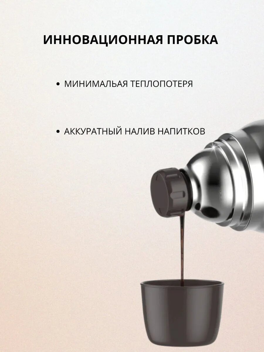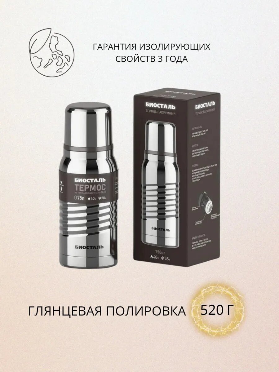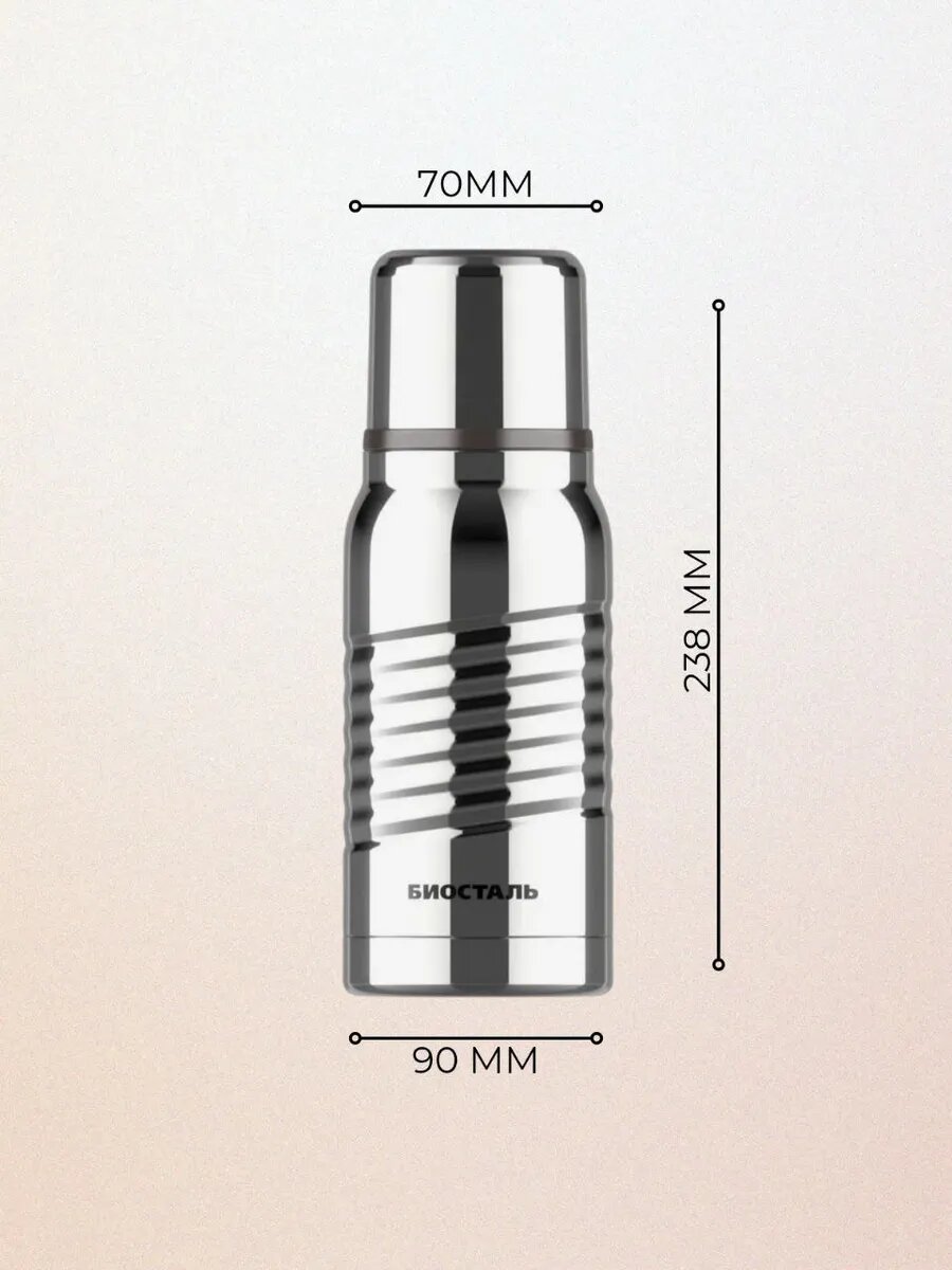 Термос BIOSTAL Экстрим, для чая, кофе, ударопрочный, серебристый, с чашкой, 1 л глянцевый