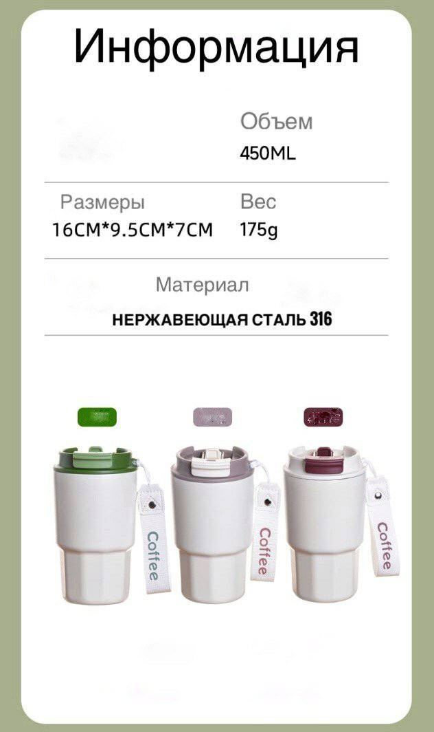 Термокружка Beibaobao, нержавеющая сталь, 450мл, капучино интересное: