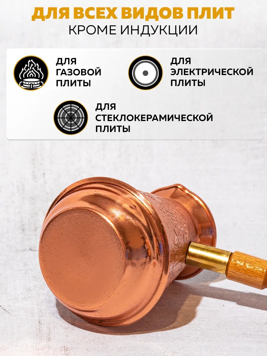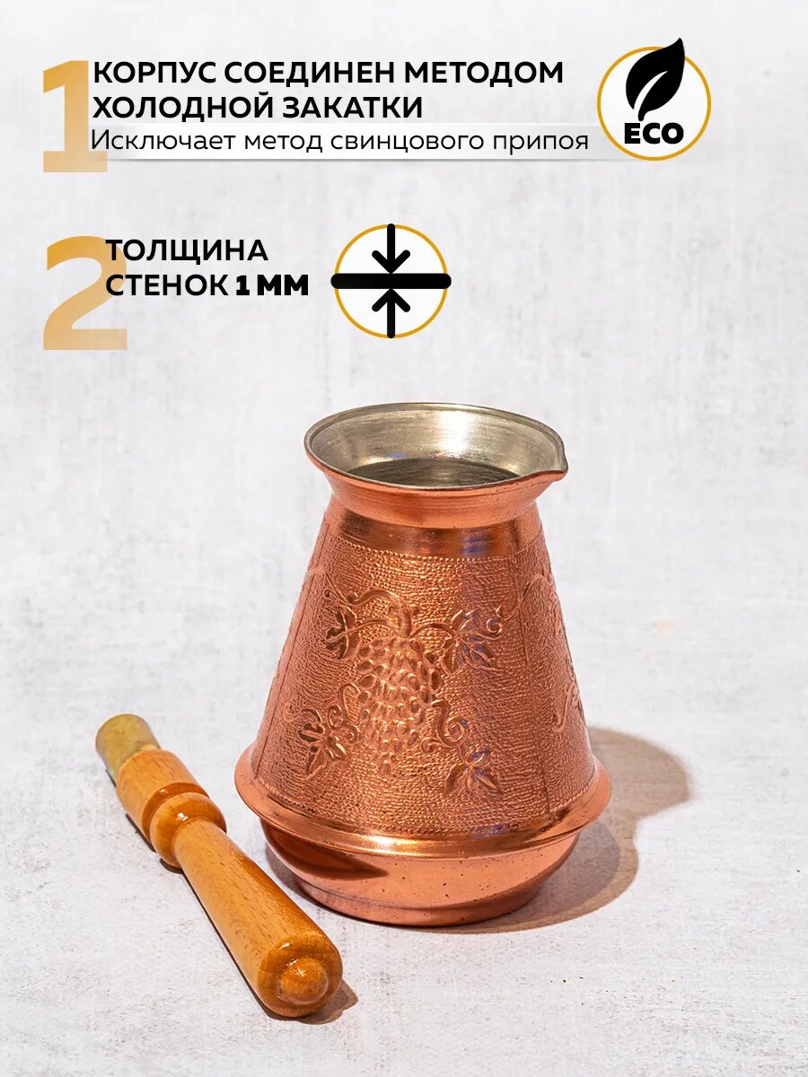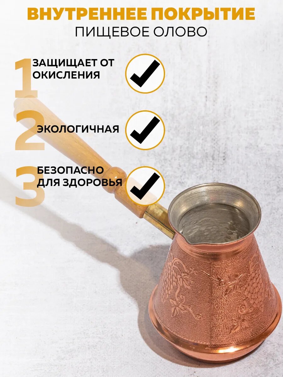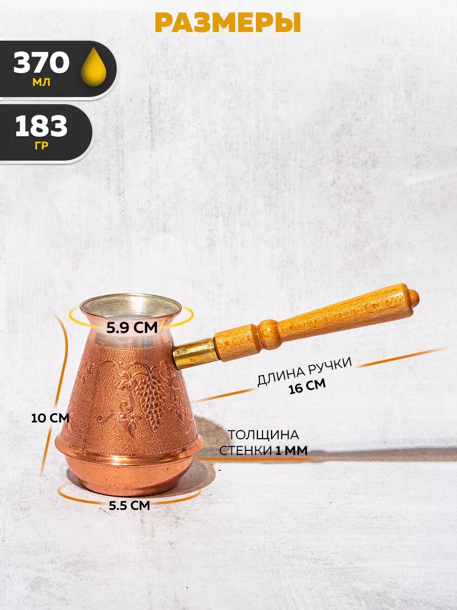 Турка для кофе медная TimA Л-370С съемная деревянная ручка, на 370 мл. интересное: