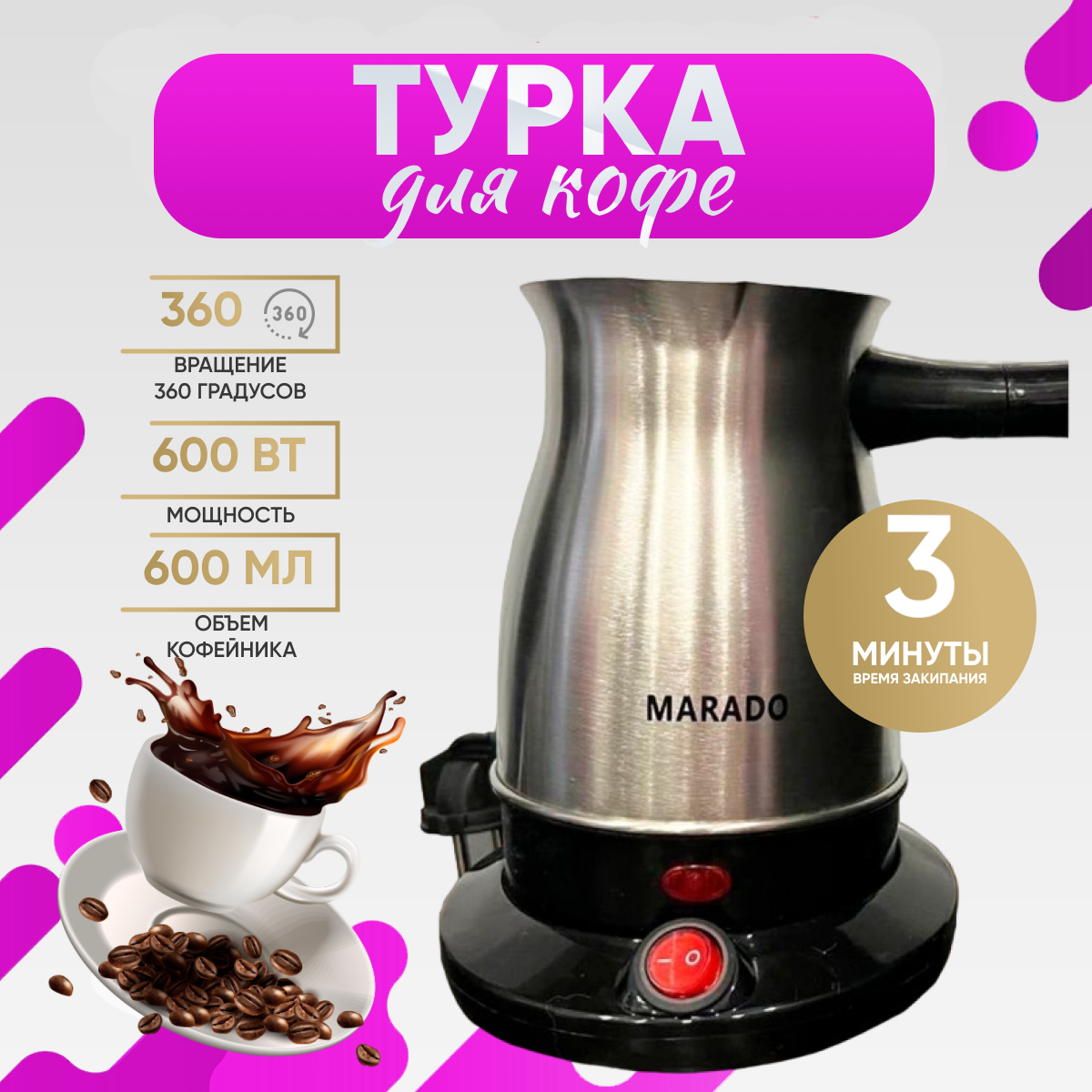 Турка электрическая, кофеварка , съемная, серебристая, объем 600 мл интересное: