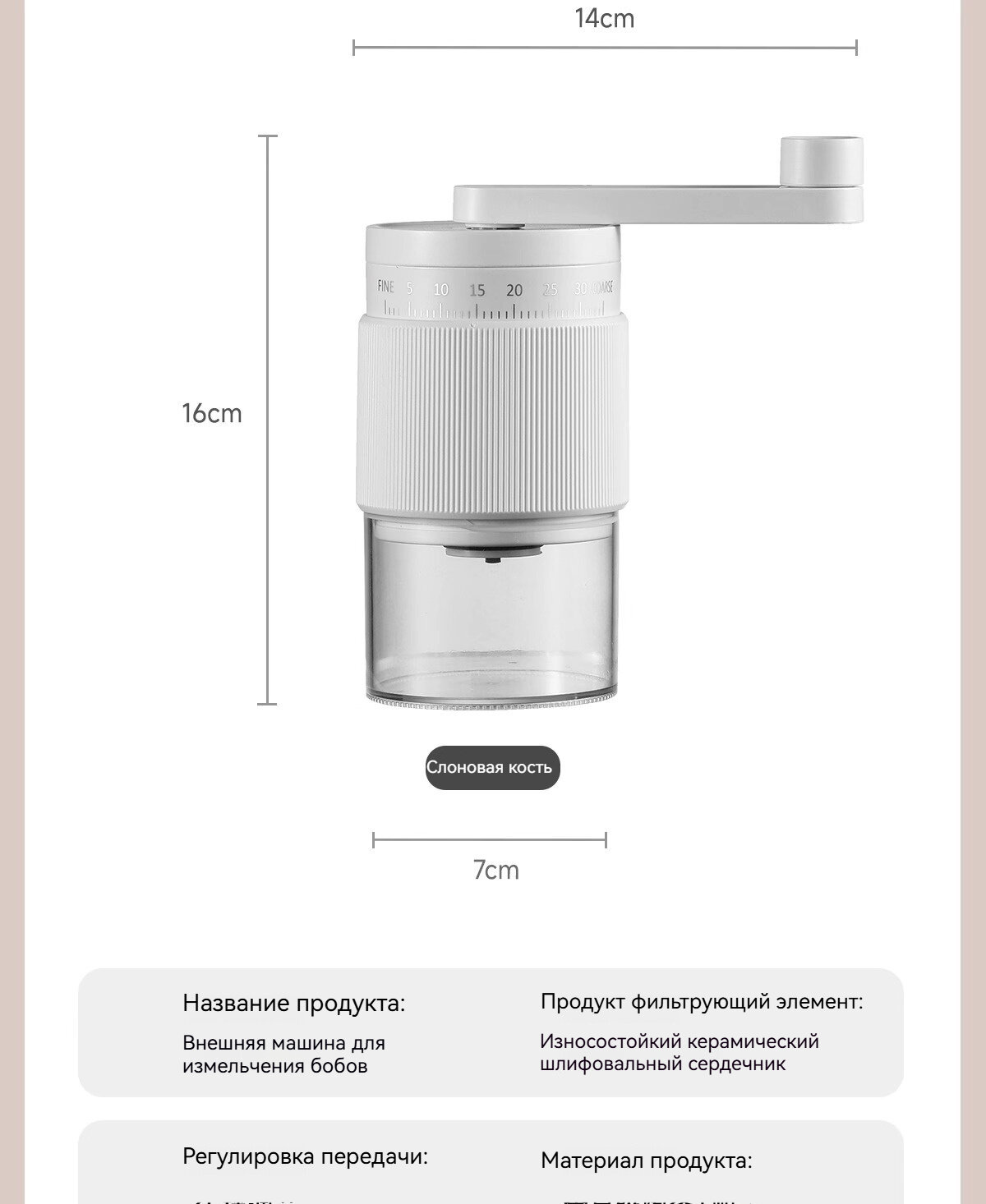 Ручная кофемолка , керамика, стекло, алюминий, съемная ручка, Ручная кофемолка, кофемолка, белый, черный интересное: