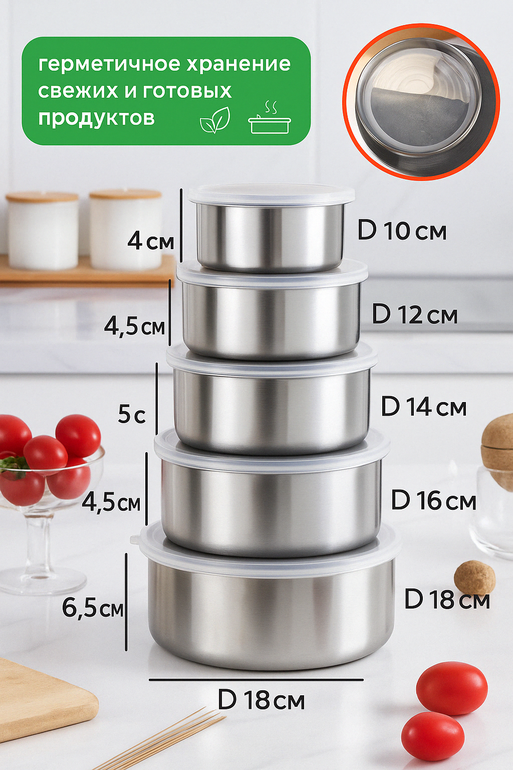 Набор контейнеров Notera Home Paradiso, с крышками, 5 штук, сталь интересное: