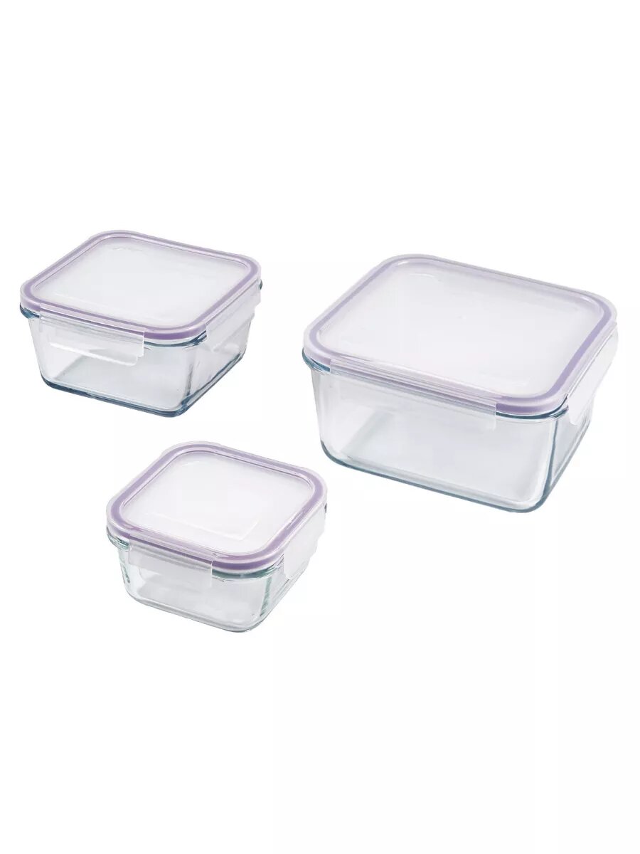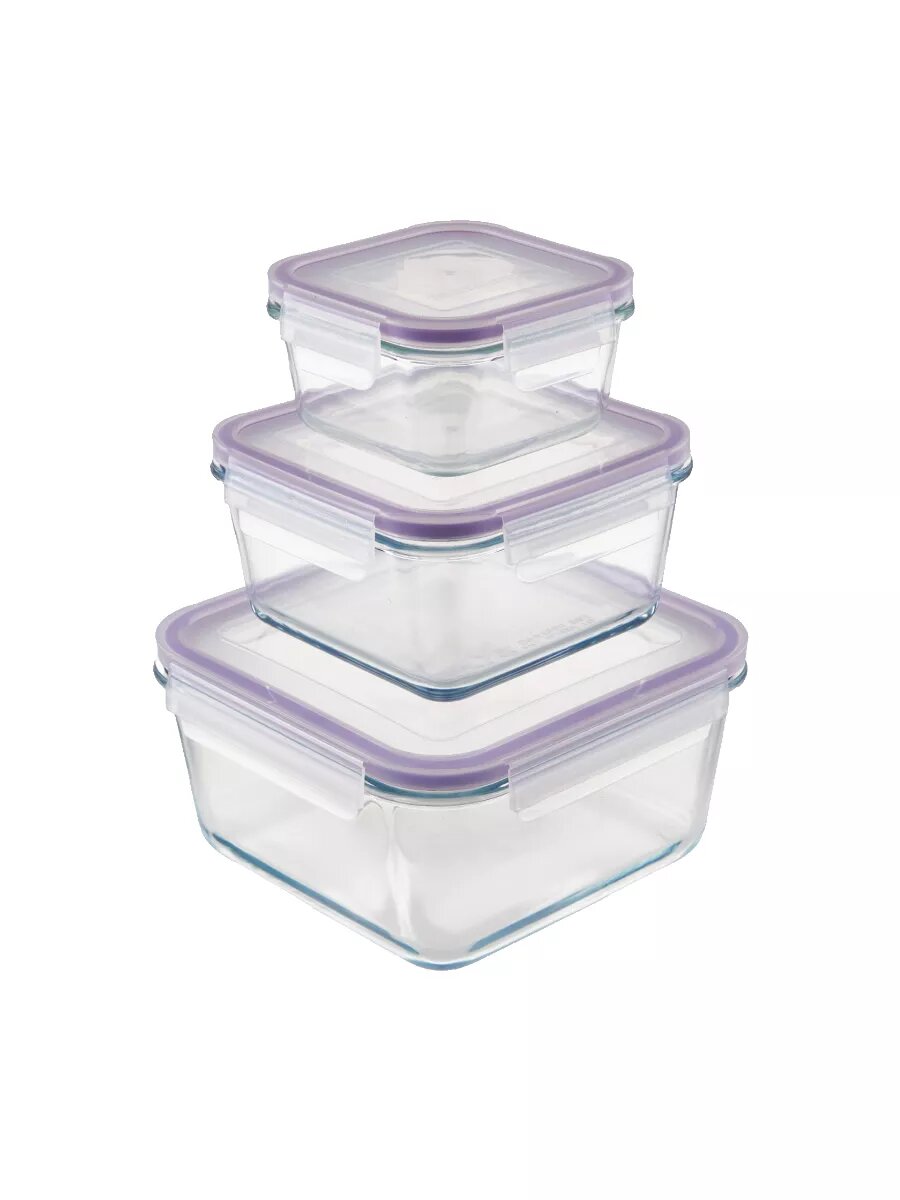 Контейнеры стеклянные, герметичные, для еды, 3 шт, 390/640/970 мл, ELEY, ELSTP002G