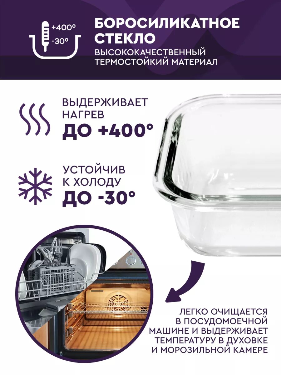 Контейнер объемом 1500 мл из жаропрочного стекла с герметичной крышкой из пластика