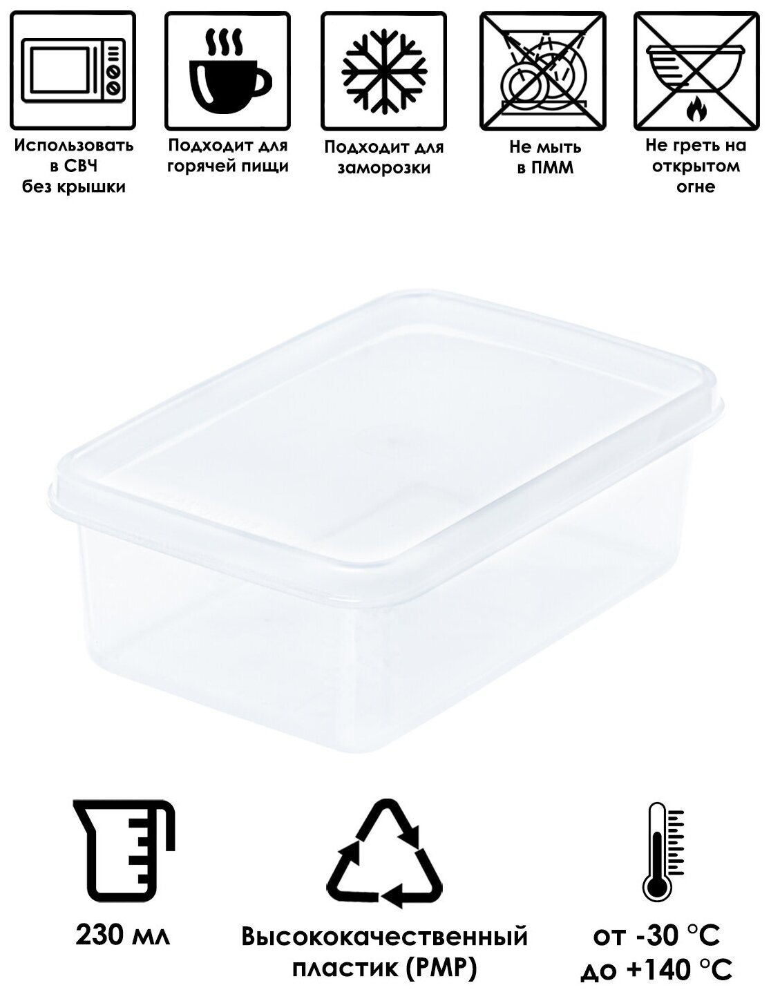 Купить Контейнер для еды герметичный пластиковый с крышкой 230 мл 12х8х3,5 см