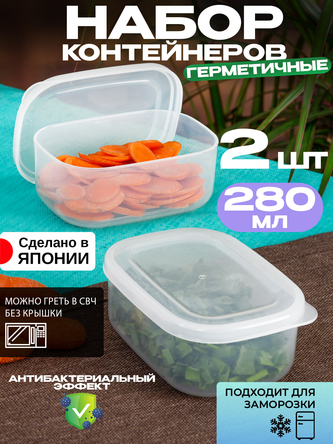 Набор герметичных контейнеров для продуктов с антибактериальным эффектом ионов серебра 280 мл, 2 шт, 11,3*8,1*4,6 см NAKAYA интересное: