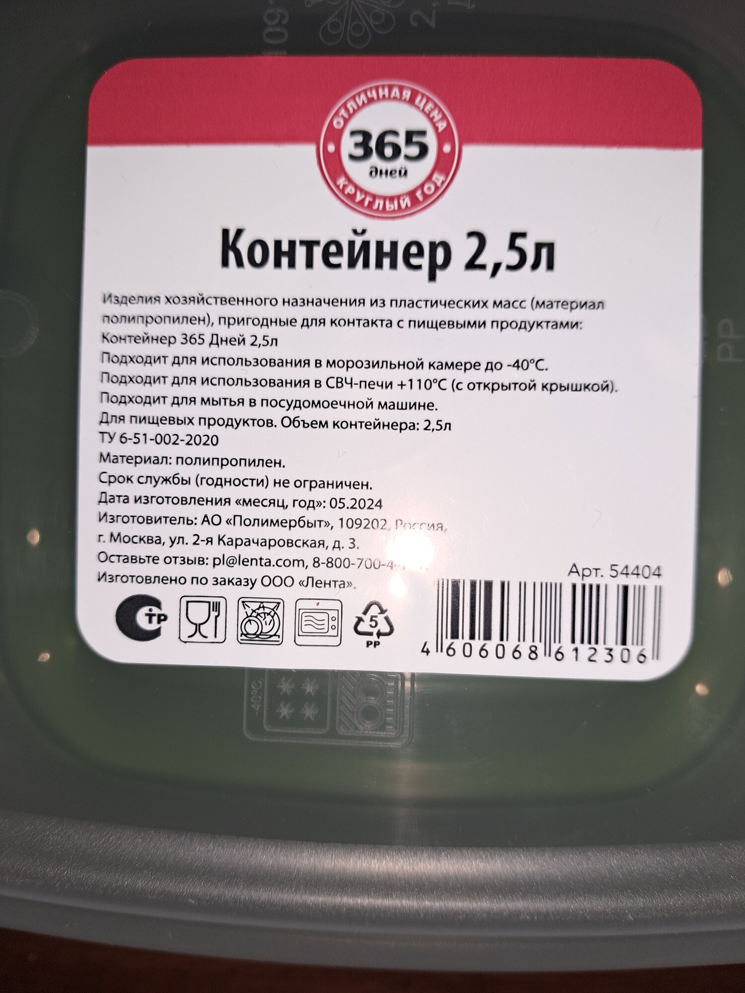 Ниже Вы можете прочитать отзывы на Контейнер 365 дней квадратный, пластик, 2.5л, Арт. 54404, Россия, 2,5 л, ознакомится с подробными характеристиками, посмотреть интересные обзоры и фотографии на Контейнер 365 дней квадратный, пластик, 2.5л, Арт. 54404, Россия, 2,5 л.