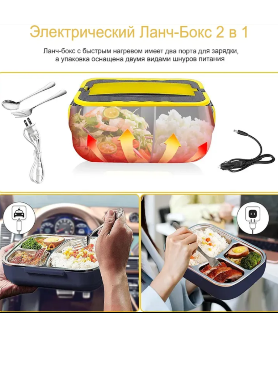 Ланч бокс Электрический ланч бокс с подогревом 110 В/220 В + 12 В/24 В, 1500 мл, синий интересное: