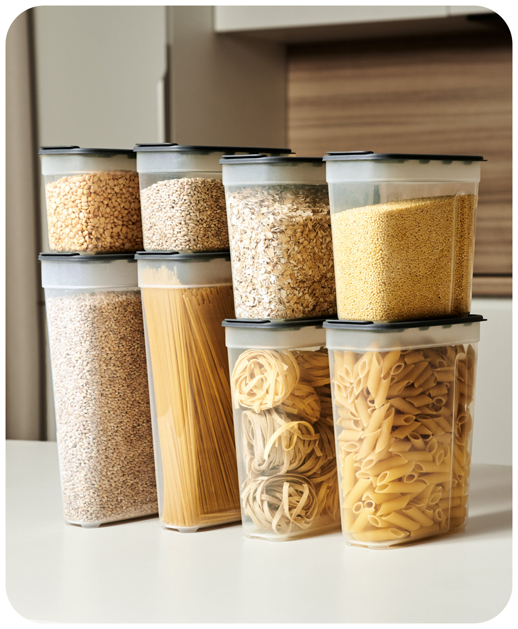Набор контейнеров для сыпучих продуктов №39 (1,0л×9шт; 1,4л×6шт; 1,8л×3шт; 2,2л×3шт) (21шт) (слоновая кость)