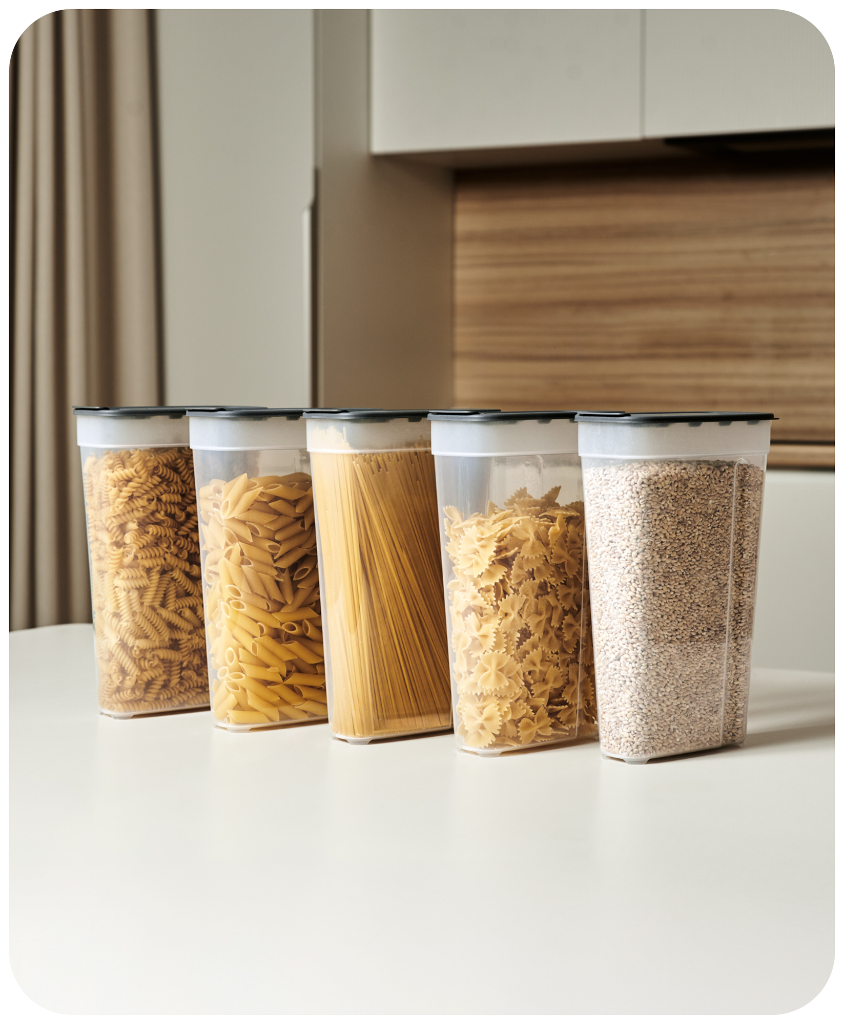 Набор контейнеров для сыпучих продуктов №32 (1,0л×3шт; 1,4л×2шт; 1,8л×1шт; 2,2л×1шт) (7шт) (слоновая кость)