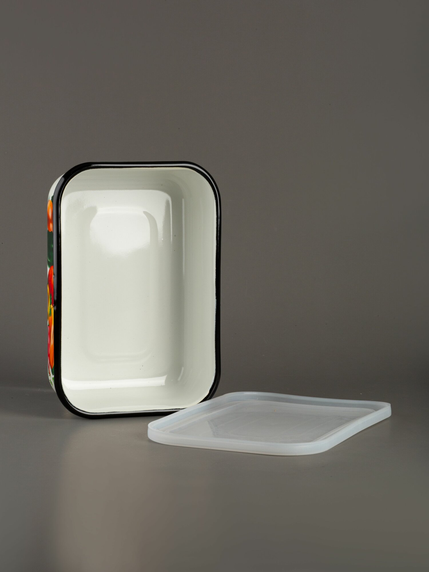 Купить Лоток, судок эмалированный 1,5л с рисунком для заливного, для холодца, для хранения продуктов