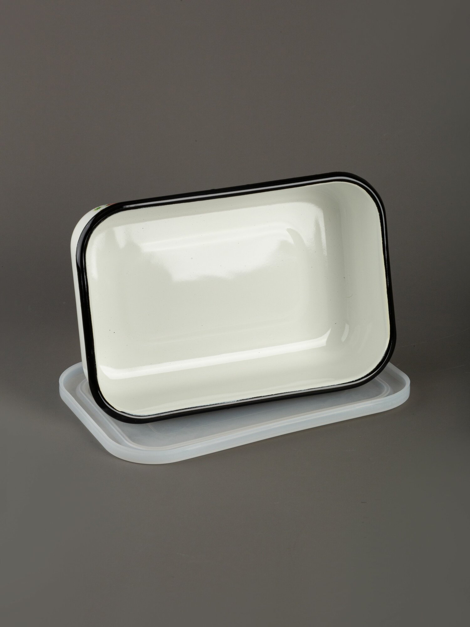 Лоток, судок эмалированный 1,5л с рисунком для заливного, для холодца, для хранения продуктов интересное: