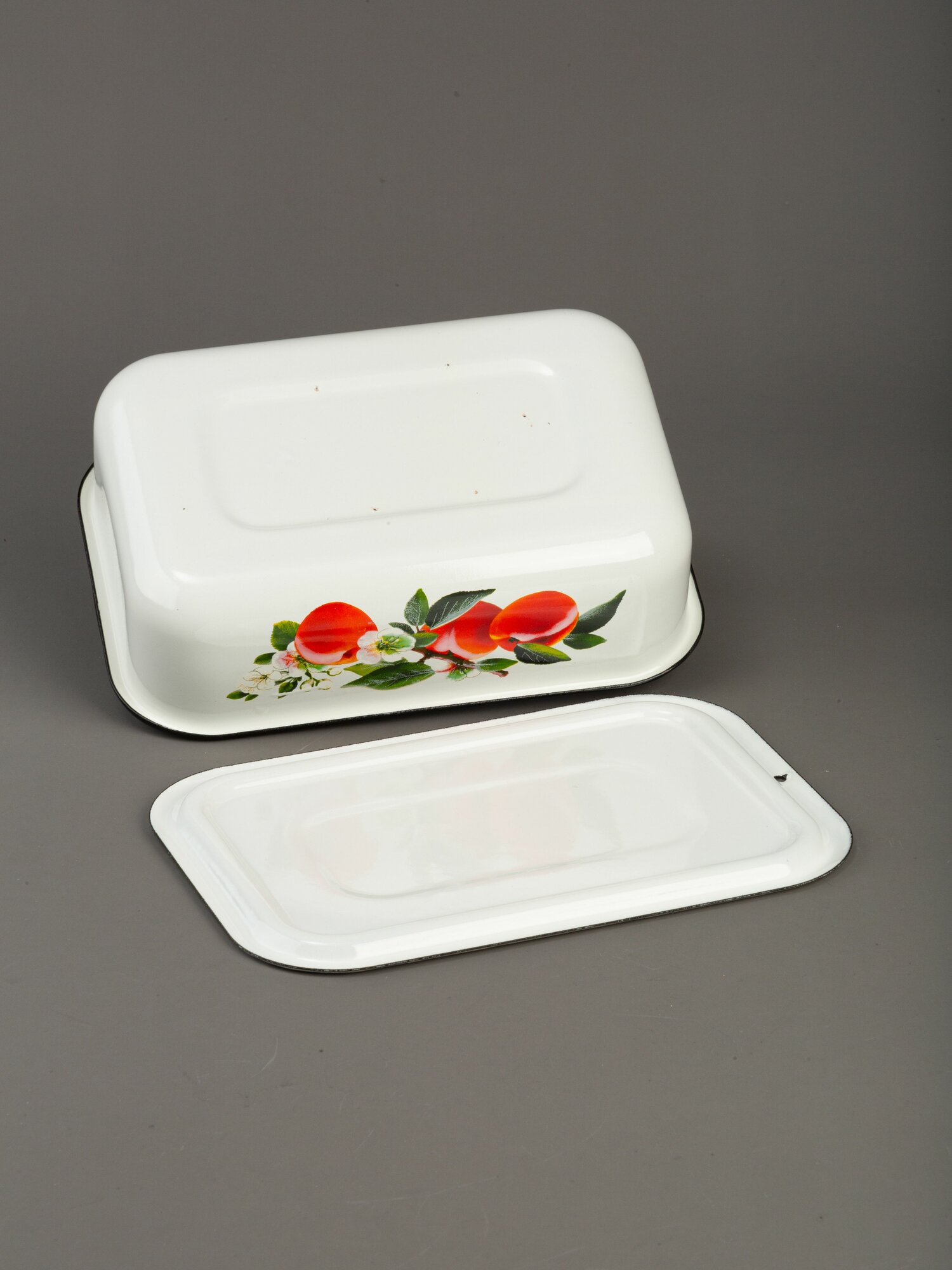 Лоток, судок эмалированный 1,5л с рисунком для заливного, для холодца, для хранения продуктов