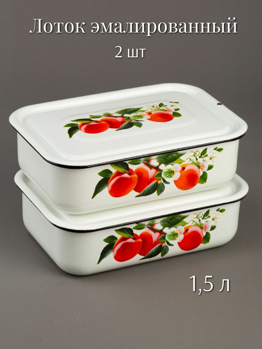 Купить Лоток, судок эмалированный 2 штуки по 1,5л с рисунком для заливного, для холодца, для хранения продуктов
