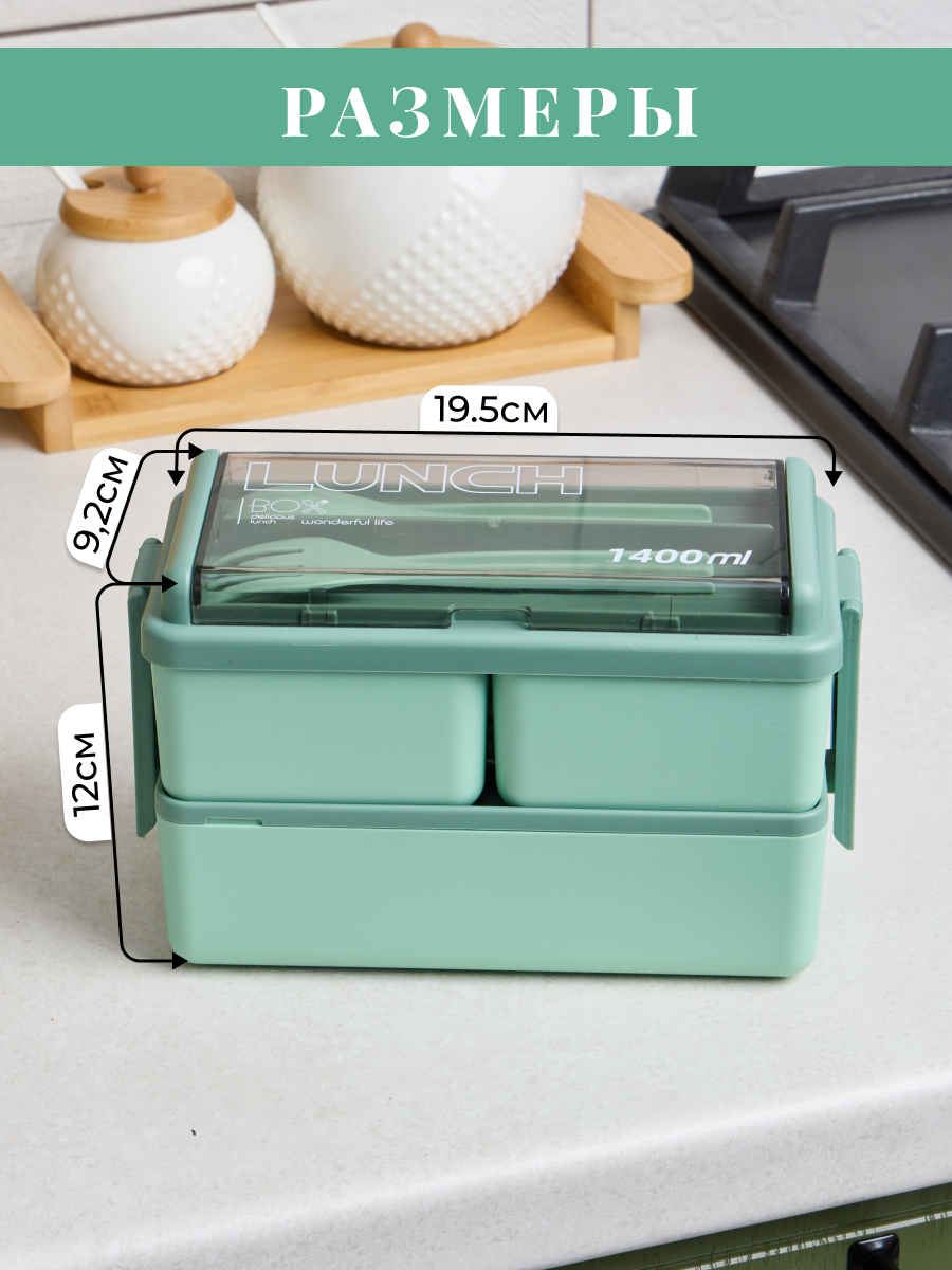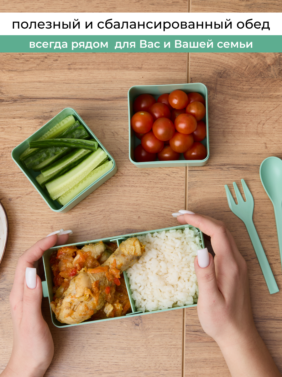 Купить Ланч-бокс с несколькими отсеками, приборами и крышкой с клапаном