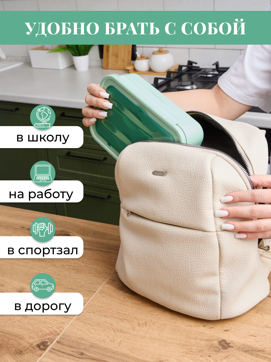 Ланч-бокс "Школьный", герметичный, 1764мл, пластик, зелёный, с разделителями интересное: