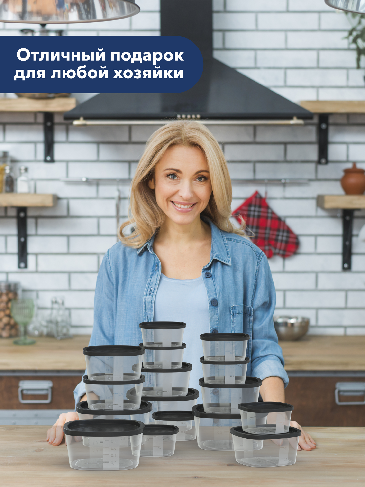 Контейнер для еды и хранения продуктов 15 шт good&good набор контейнеров для еды, черные крышки интересное: