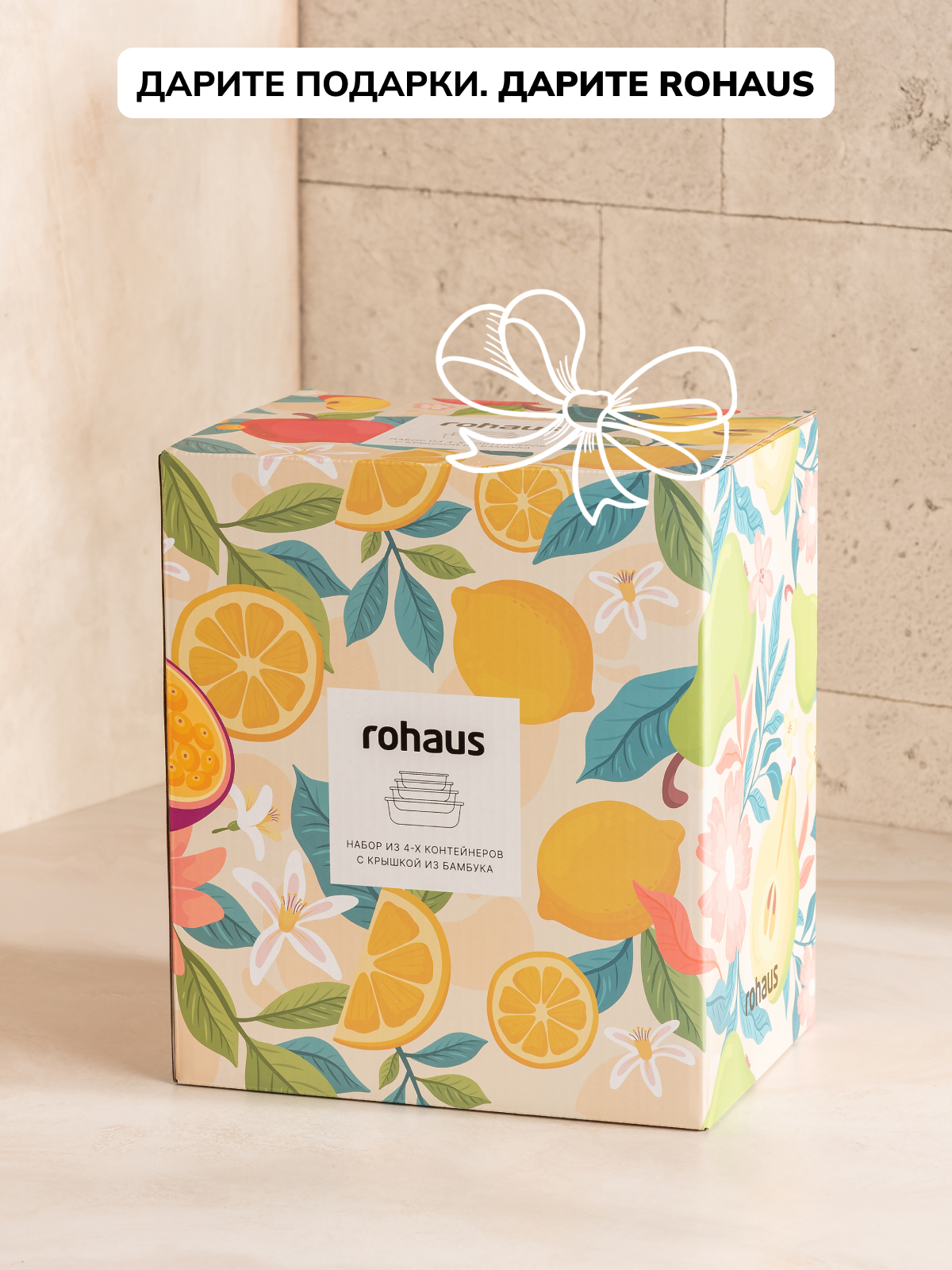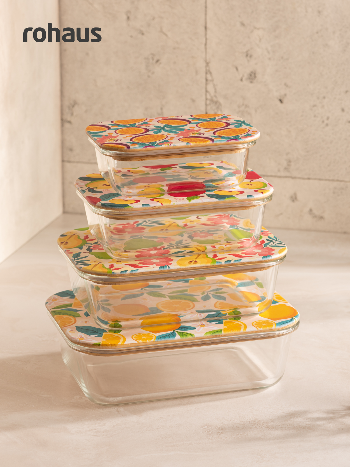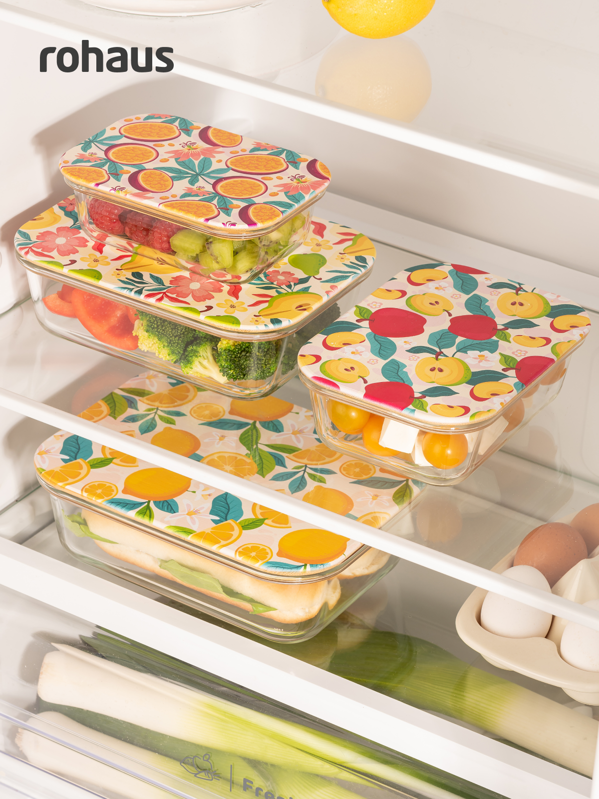 Набор стеклянных контейнеров для еды Rohaus с крышкой 4 штуки: 370мл, 650мл, 1000мл, 1500мл