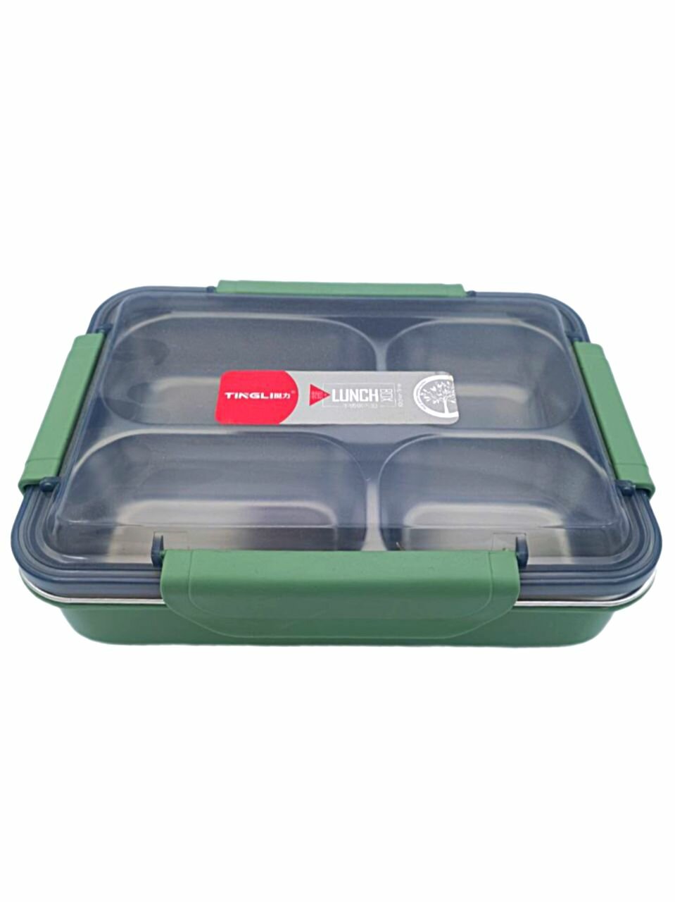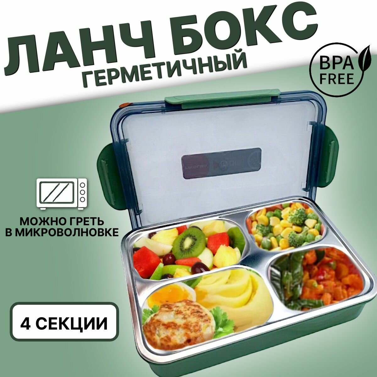 Купить Ланч бокс контейнер для еды с 4 секциями - зеленый , 28х21х7 / металлический
