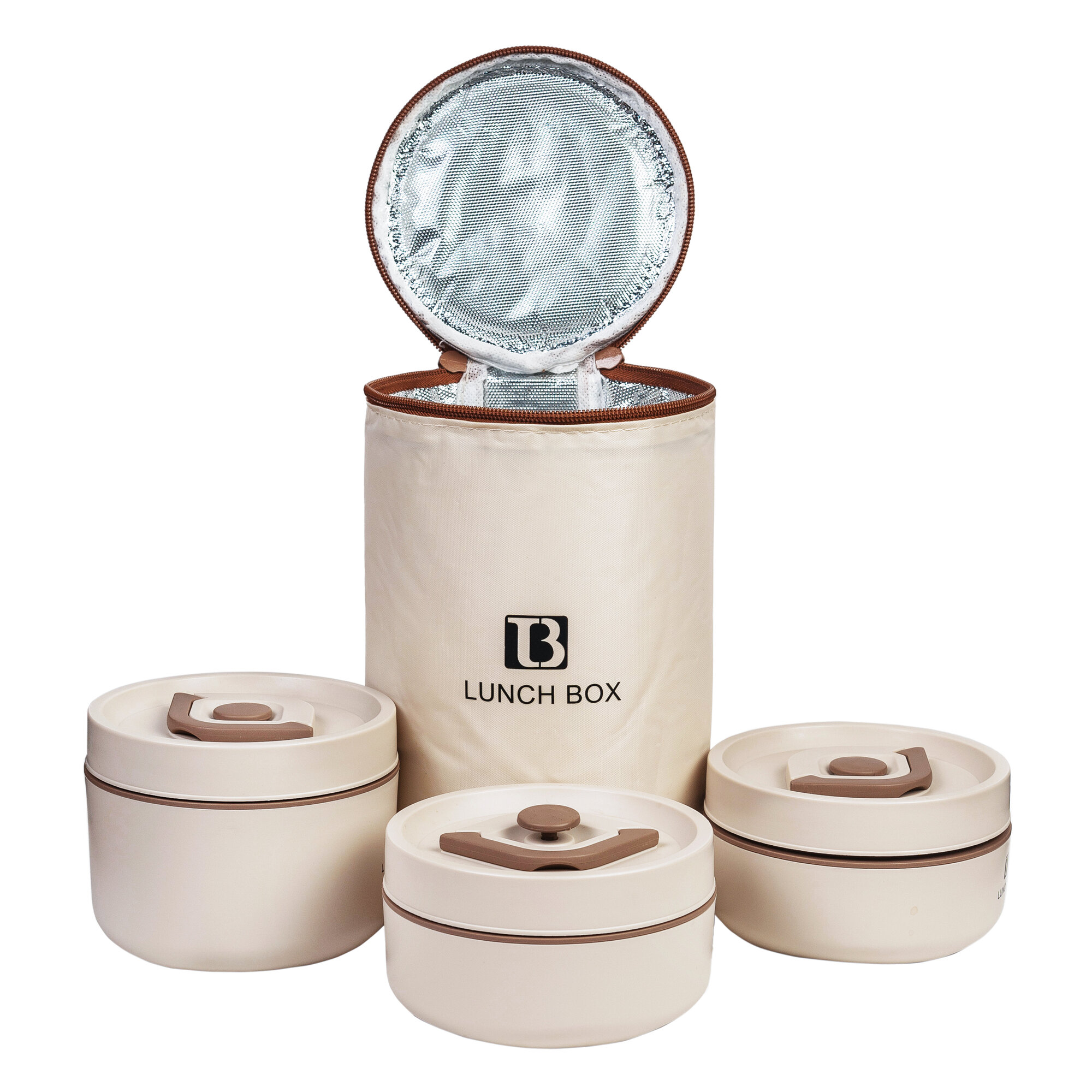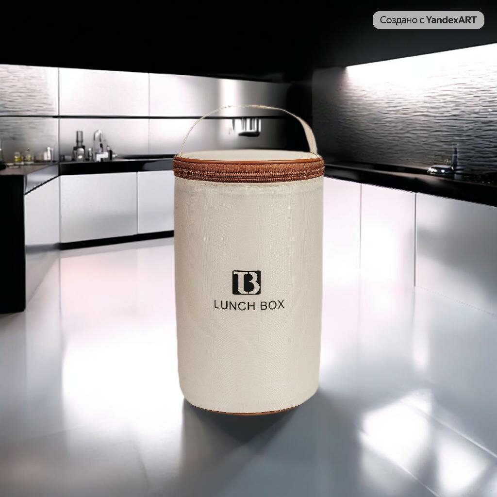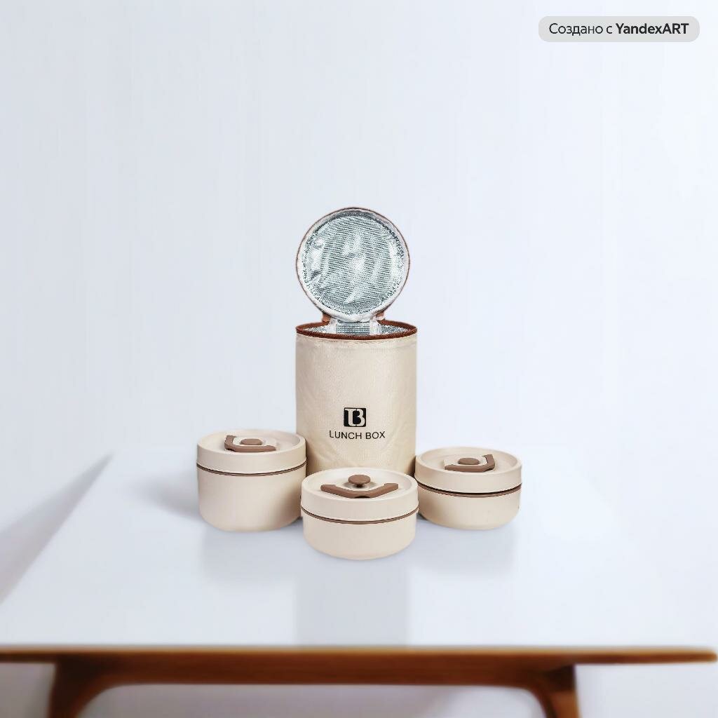 Купить Lunch Box с тремя термо-контейнерами герметичными металл. отделениями для еды, супа, с термо-сумкой для школы 1.4л. Сталь внутри