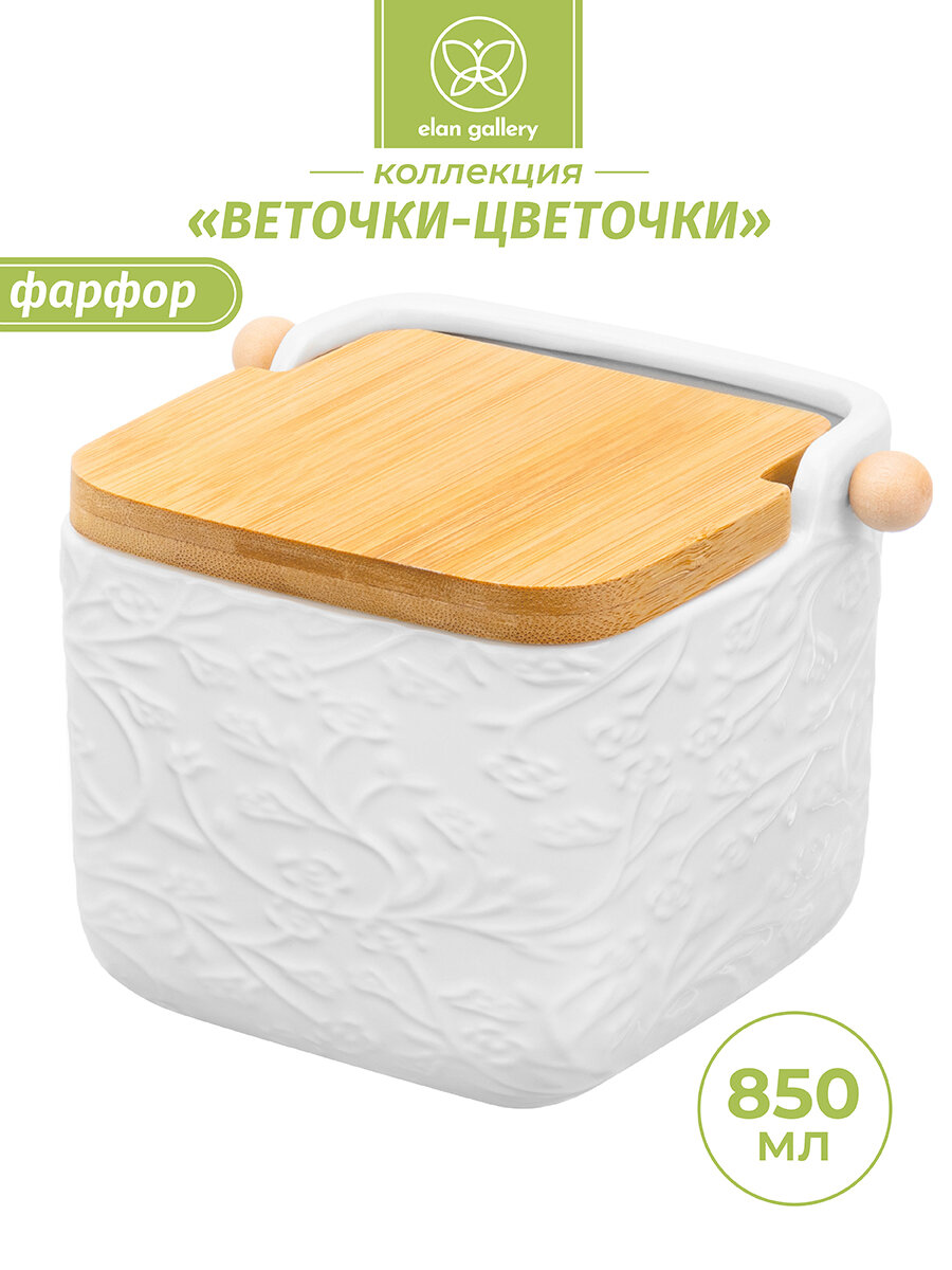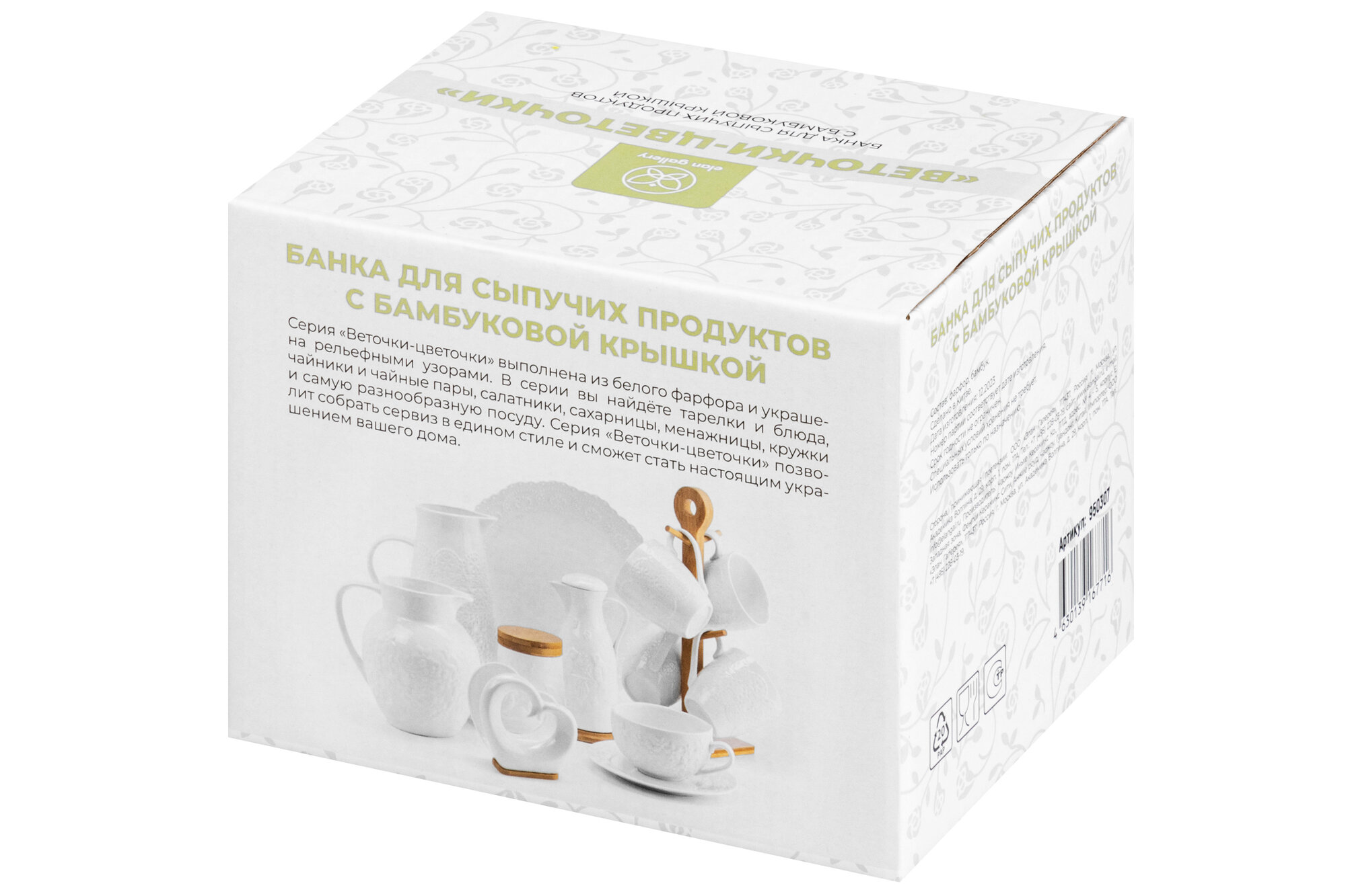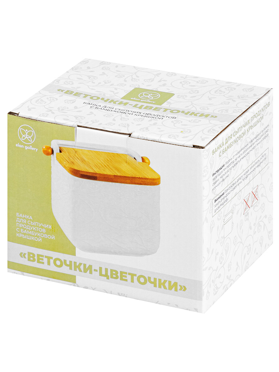 Банка для хранения сыпучих продуктов, соли, сахара, кофе, чая 850 мл Elan Gallery Веточки-цветочки, с откидной крышкой интересное: