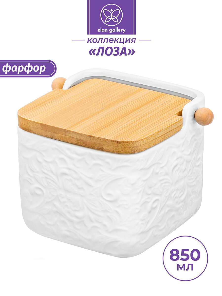 Банка для хранения сыпучих продуктов/ соли / сахара / кофе / чая 850 мл Elan Gallery Лоза, с откидной бамбуковой крышкой интересное: