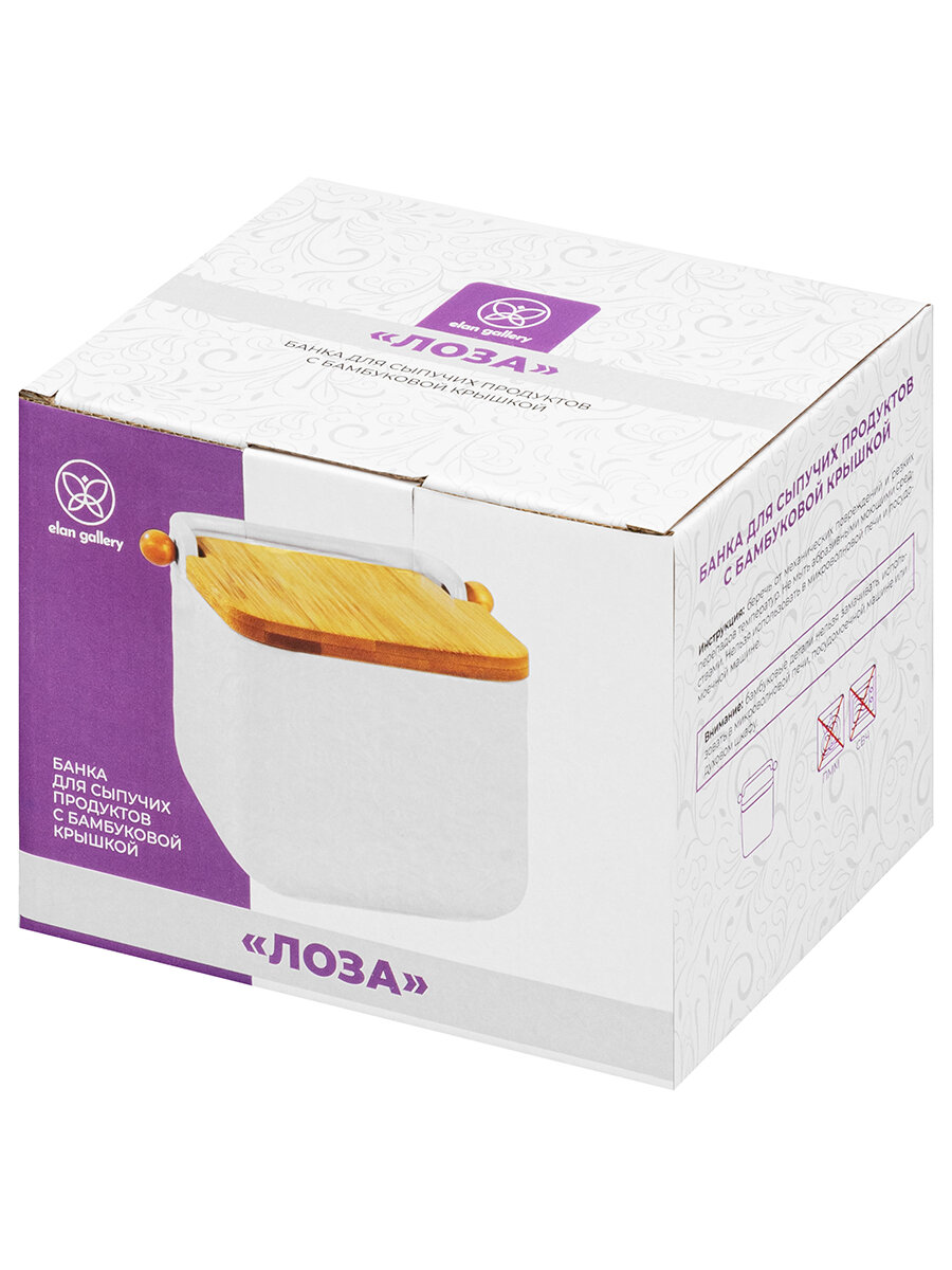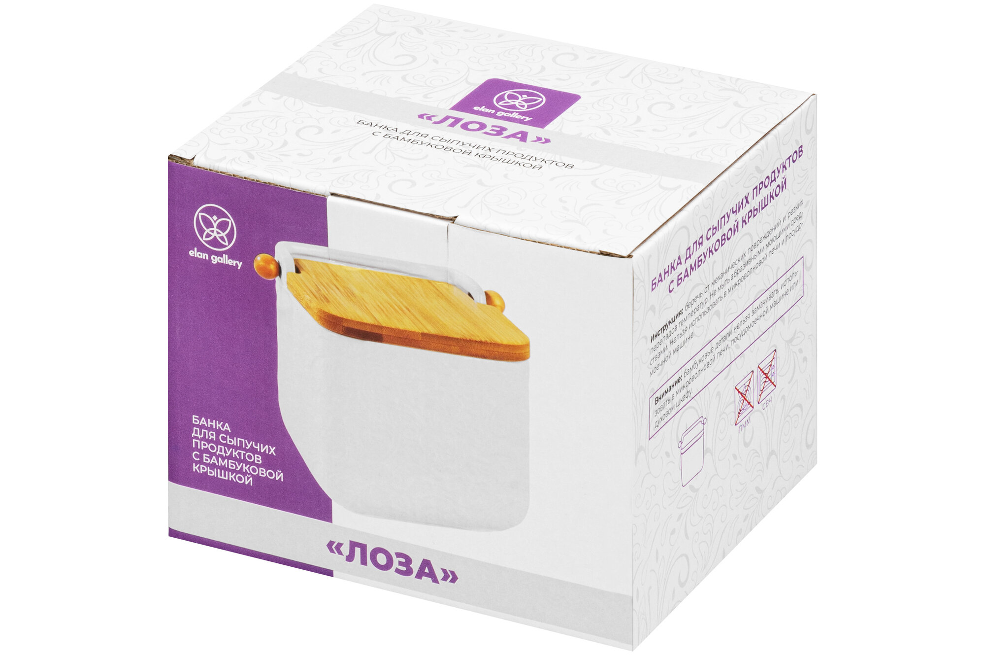 Купить Банка для хранения сыпучих продуктов/ соли / сахара / кофе / чая 850 мл Elan Gallery Лоза, с откидной бамбуковой крышкой