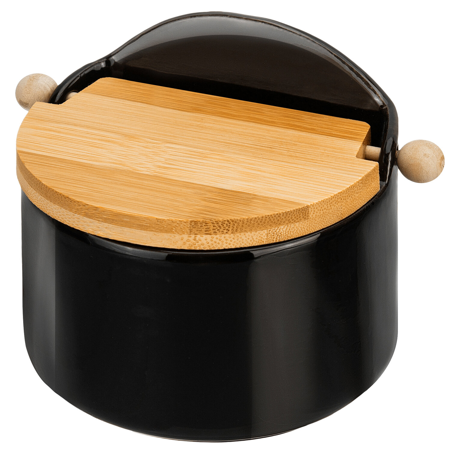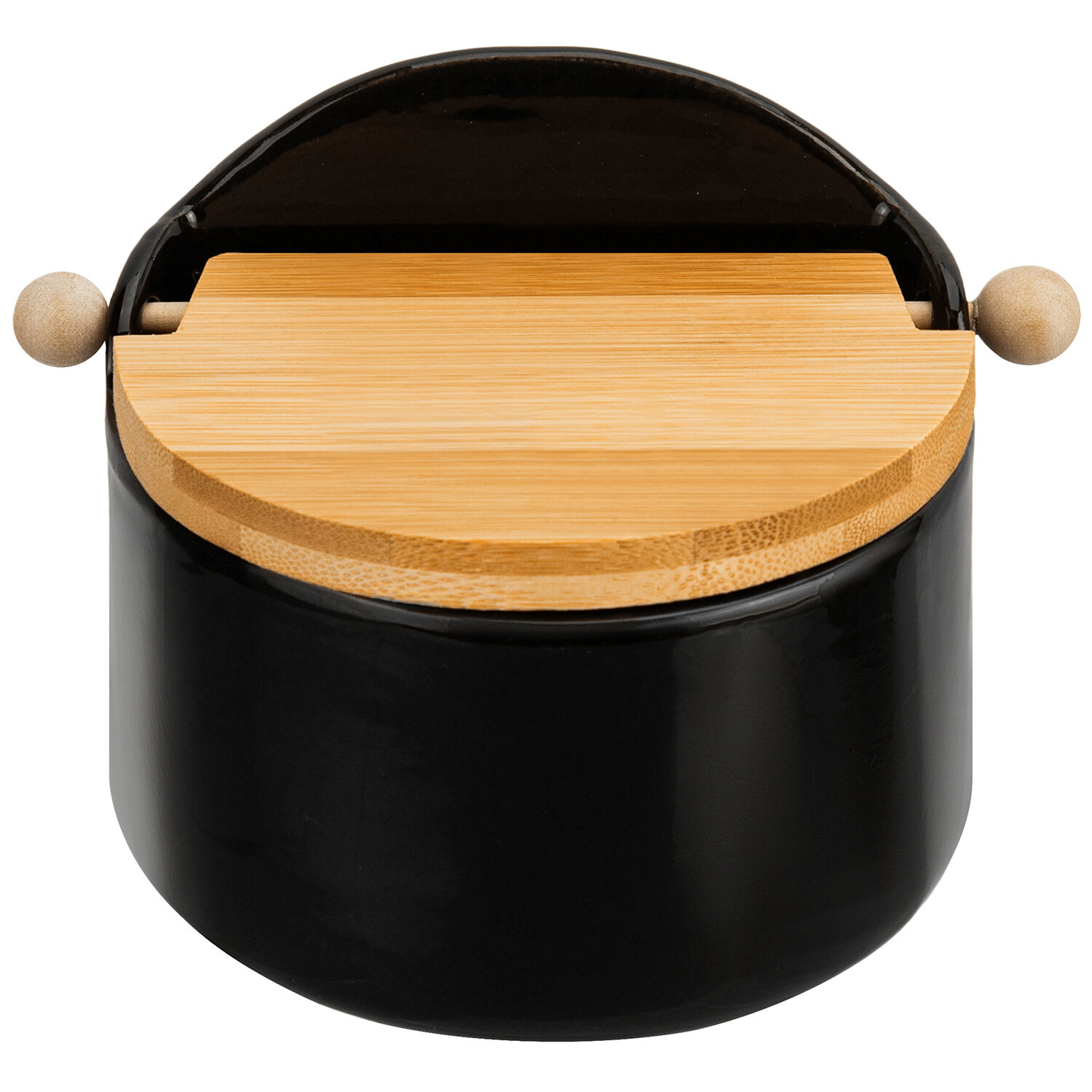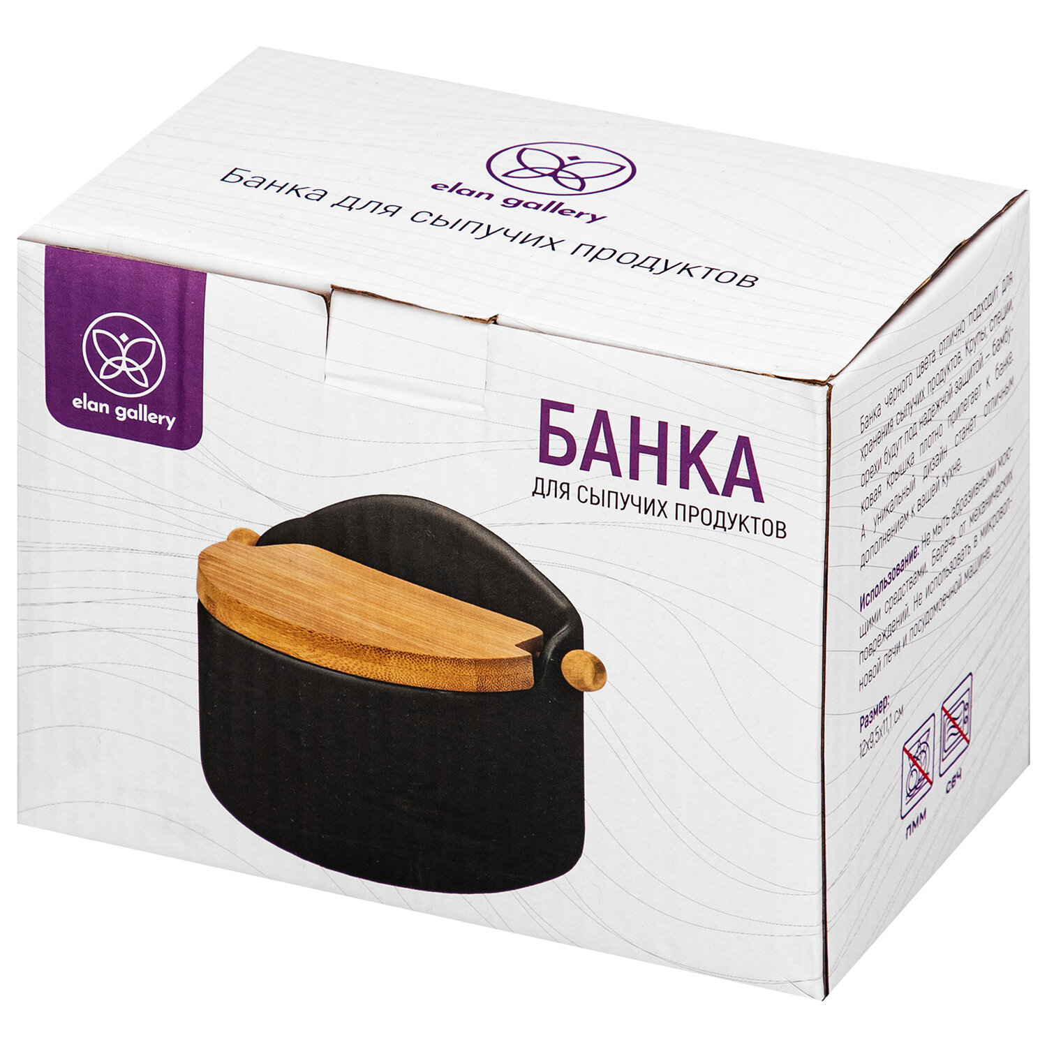Купить Банка для хранения сыпучих продуктов/ для чая, кофе 500 мл Elan Gallery "Черная" + откидная бамбуковая крышка