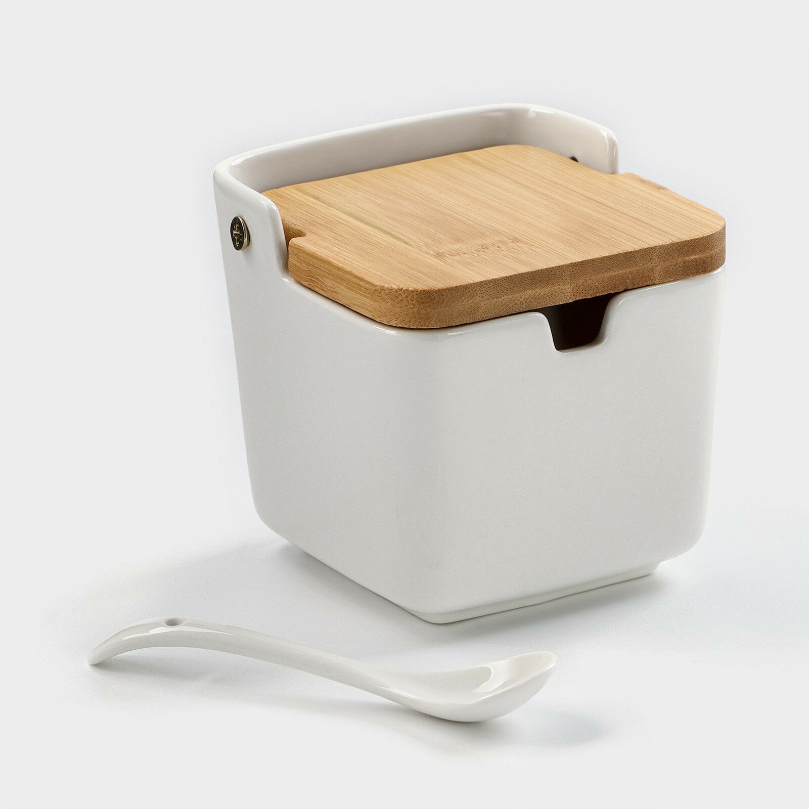 Банка фарфоровая для сыпучих продуктов с ложкой Bella Tenero, 280 мл, цвет белый, 1047404 интересное: