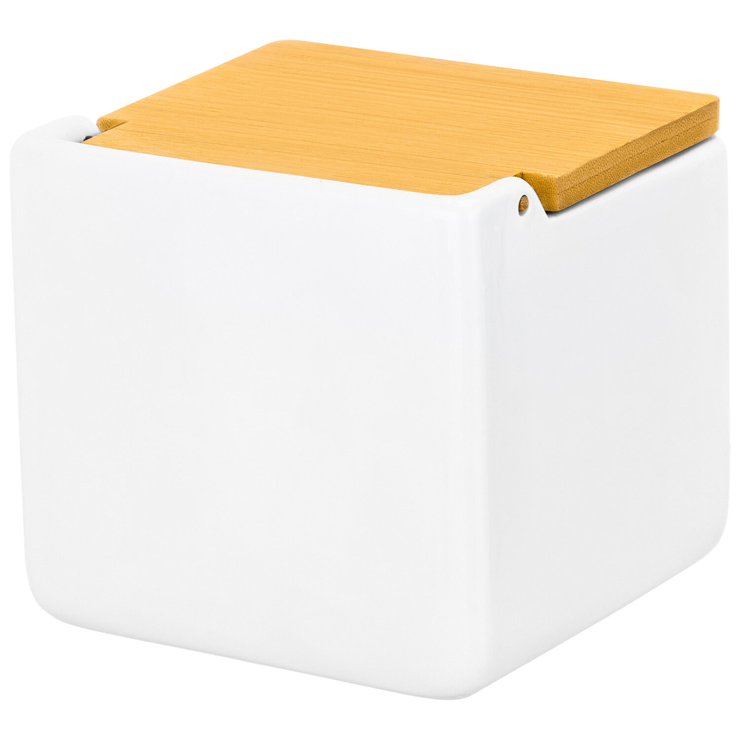 Купить Банка для хранения сыпучих продуктов 700 мл Elan Gallery Белая с откидной бамбуковой крышкой, керамика