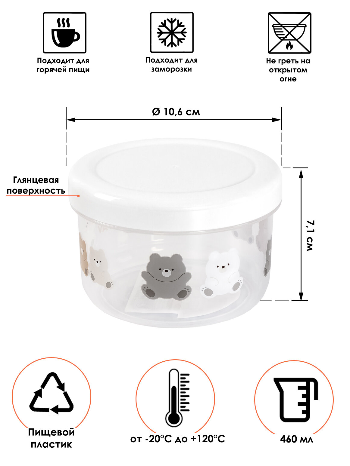 Контейнер для продуктов с закручивающейся крышкой 460 мл, Д10,6 х 7,1 см, белый интересное: