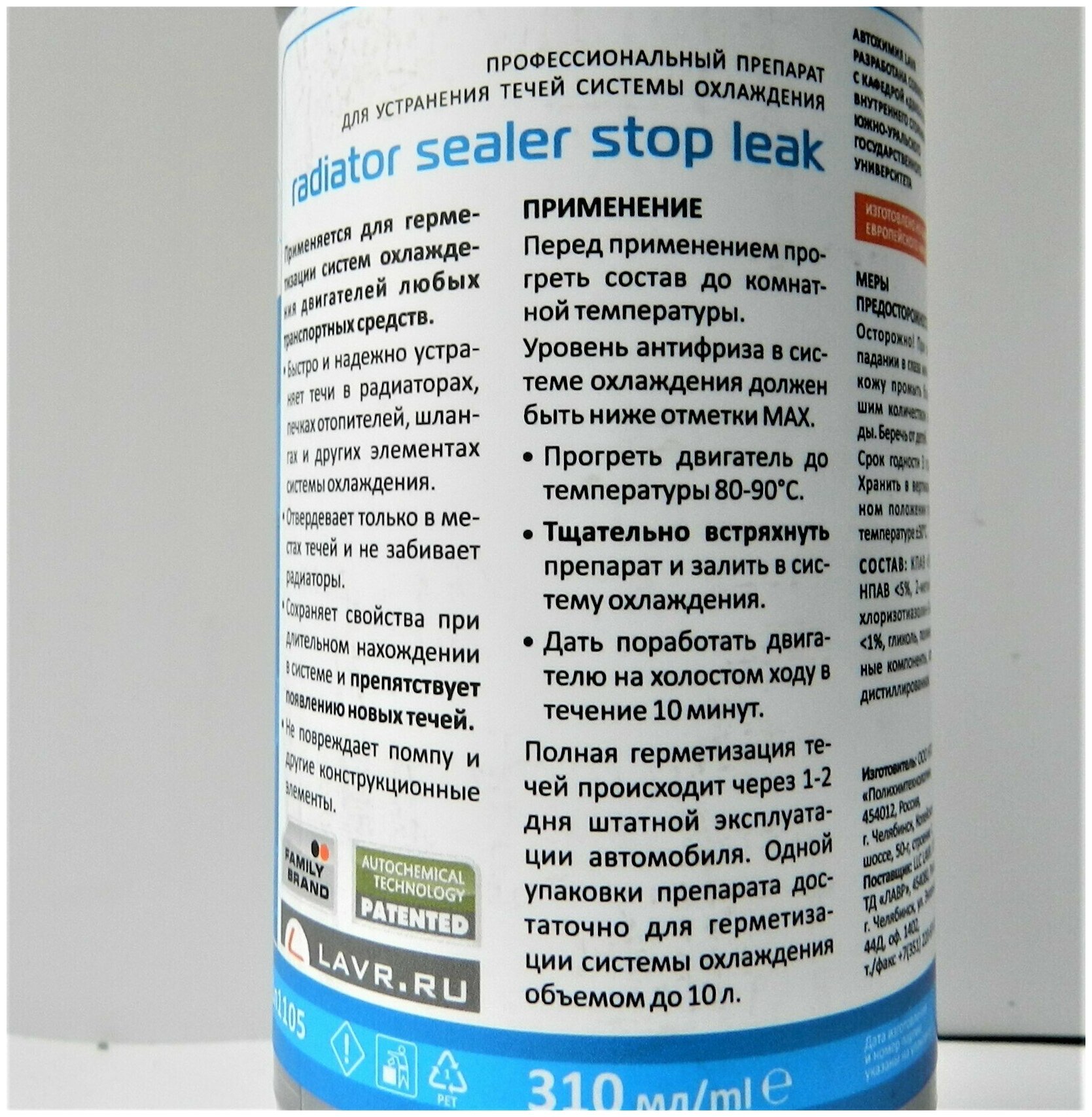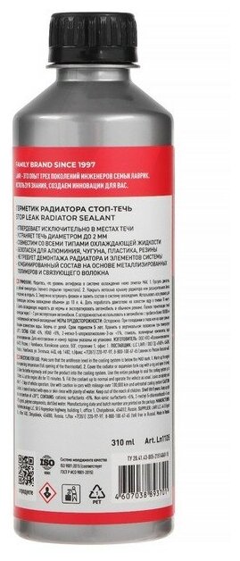 Герметик радиатора Стоп-течь LAVR Radiator sealer Stop Leak 310мл интересное: