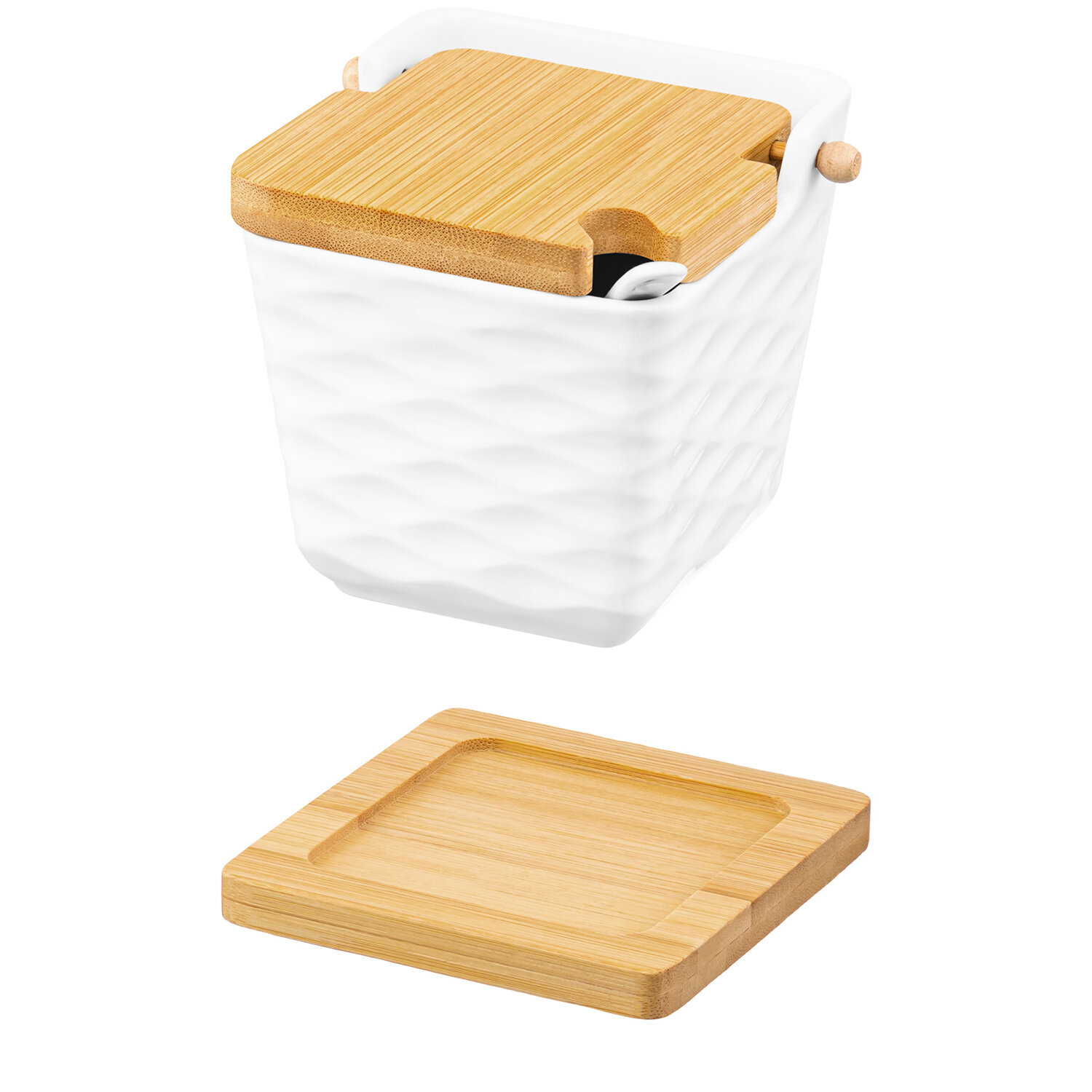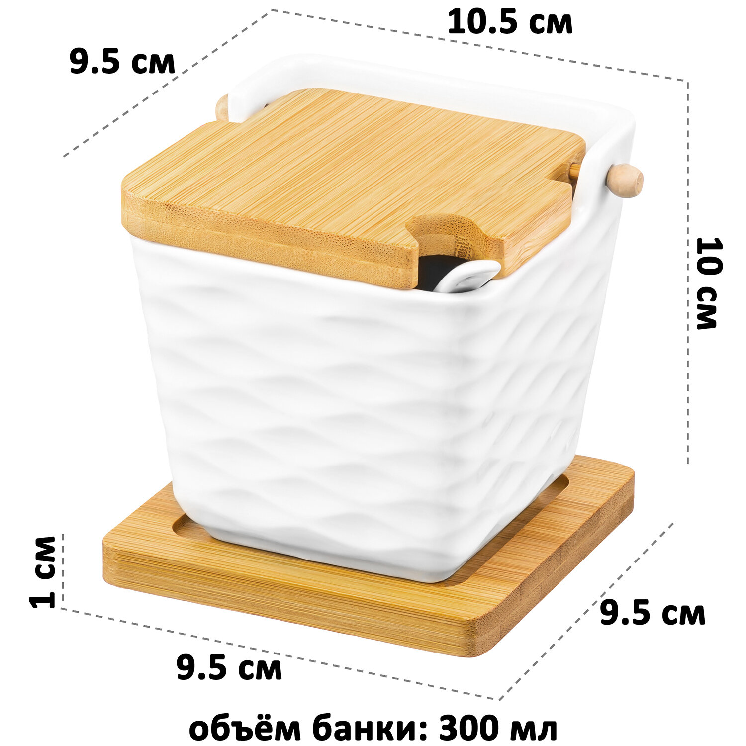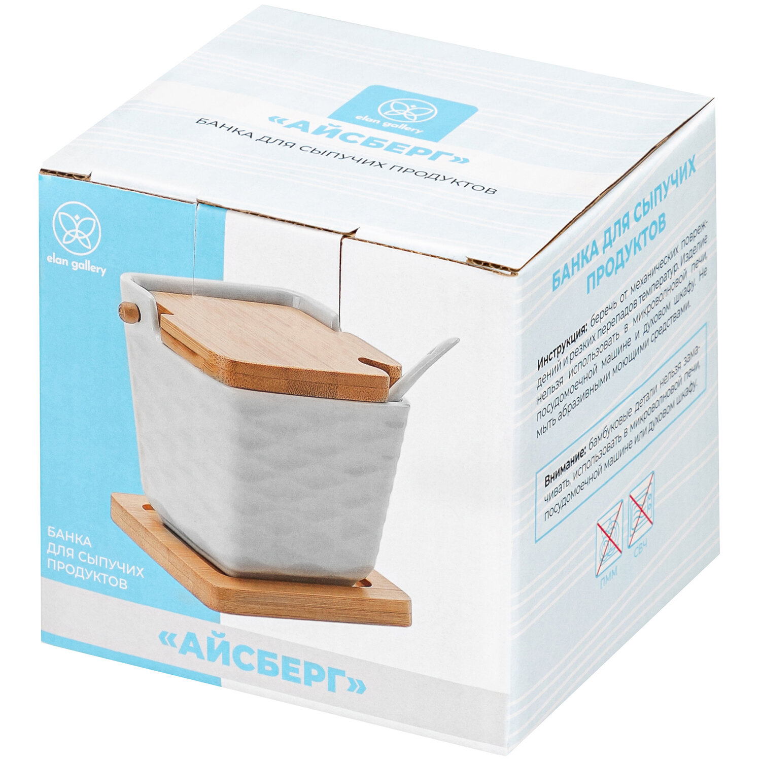 Банка для хранения сыпучих продуктов, соли, специй, чая 300 мл Elan Gallery Айсберг волны, с ложкой, крышкой, на подст. интересное: