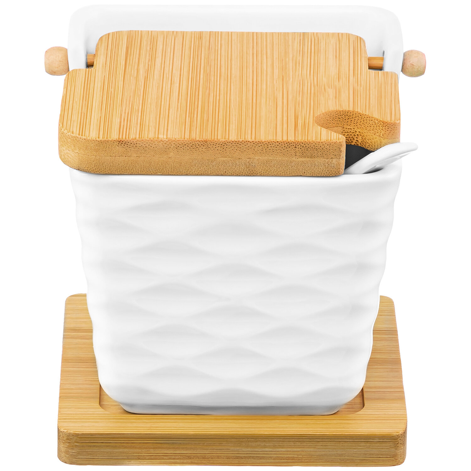 Купить Банка для хранения сыпучих продуктов, соли, специй, чая 300 мл Elan Gallery Айсберг волны, с ложкой, крышкой, на подст.