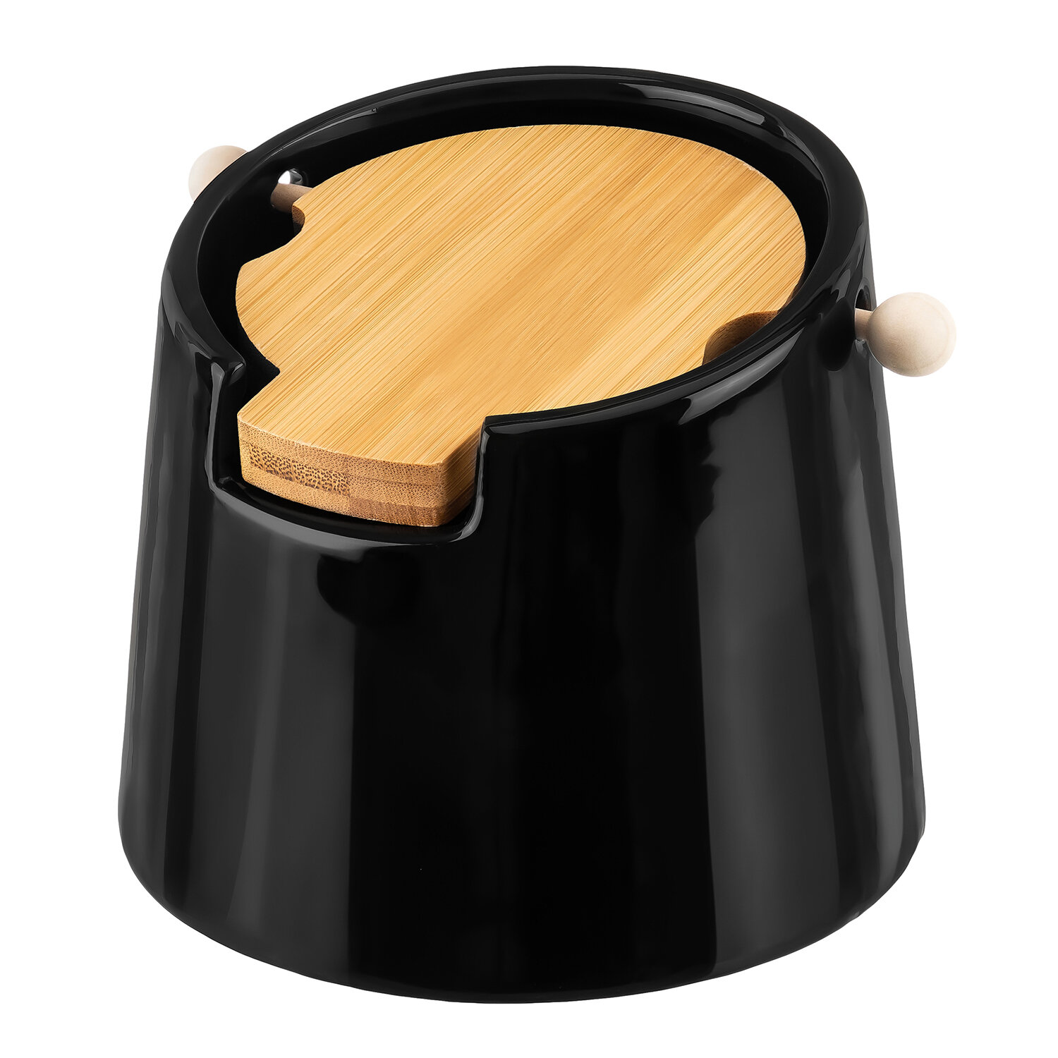 Купить Банка для хранения сыпучих продуктов/ соли/ специй/ чая/ кофе 700 мл Elan Gallery Черная, с откидной бамбуковой крышкой