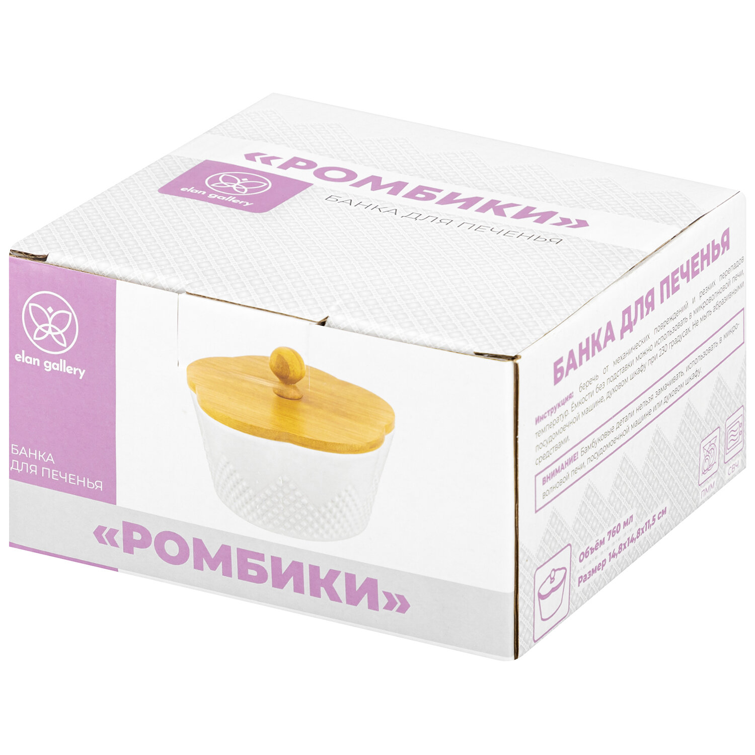 Купить Банка для печенья, для хранения сыпучих продуктов, для орехов, для снеков 760 мл Elan Gallery Ромбики с дер. крышкой
