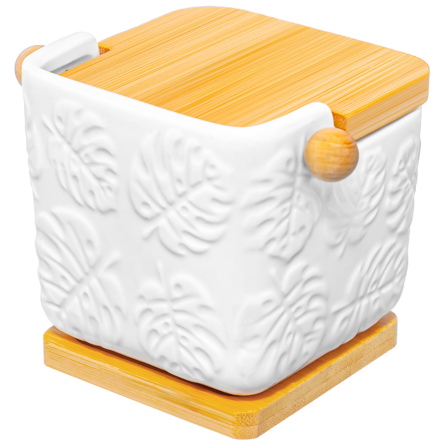 Купить Банка для хранения сыпучих продуктов, соли, чая, кофе 300 мл Elan Gallery Тропики + ложка + откидная крышка + подставка