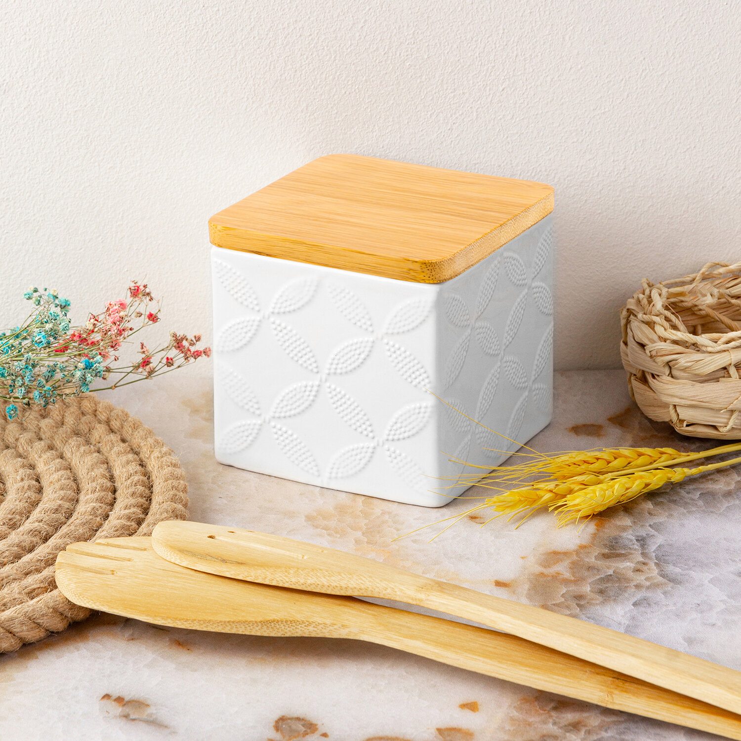 Купить Банка для хранения сыпучих продуктов, чая, кофе 630 мл Elan Gallery Узоры, с дер. крышкой с силиконовым уплотнителем