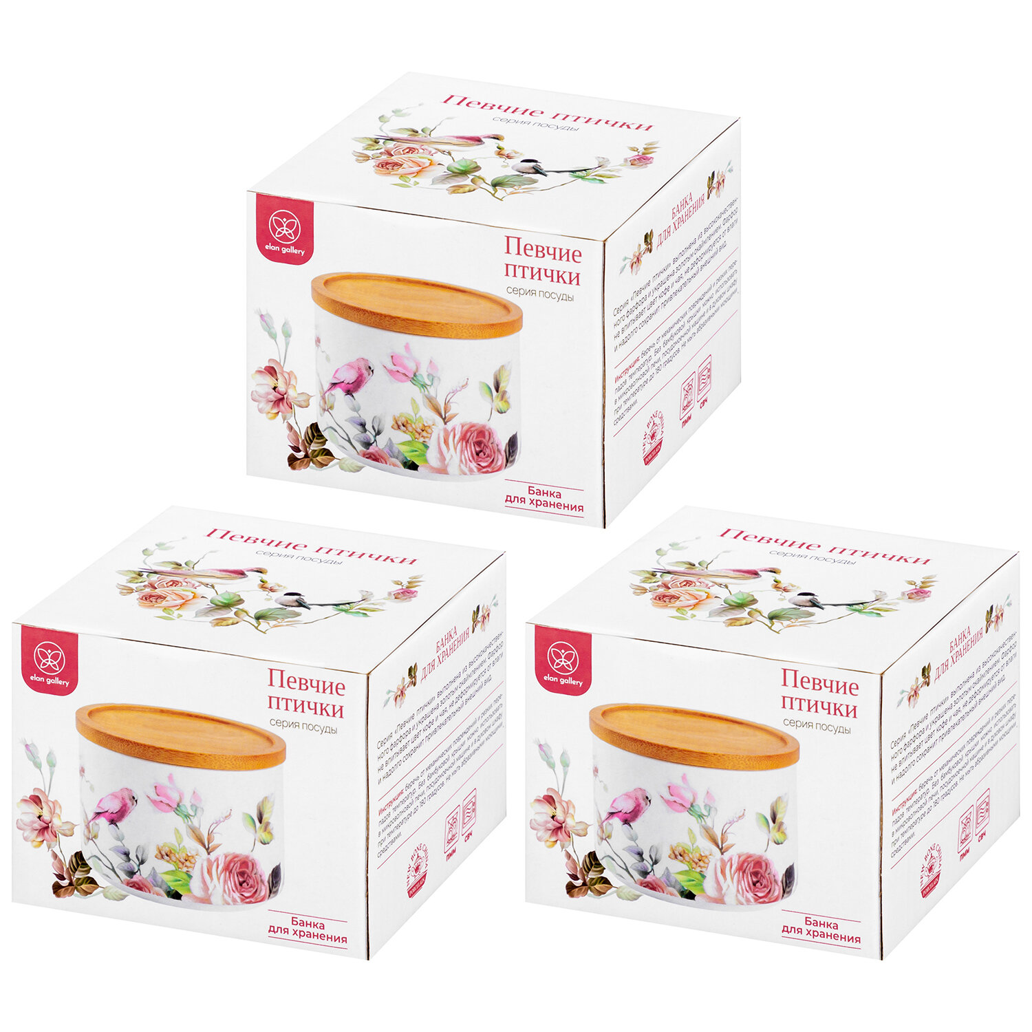 Купить Банка для хранения сыпучих продуктов, специй 3шт 250мл Elan Gallery Певчие птички, с дер. крышкой-подставкой, набор